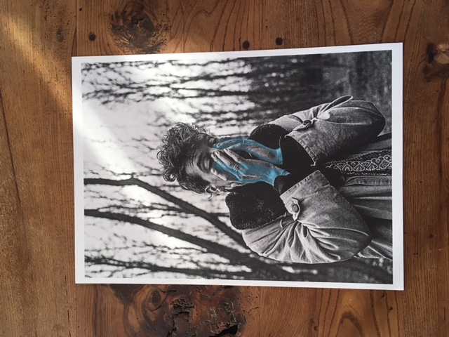 Risographie, impression ton gris avec encre bleue sur papier Arena natural rough 200g, 30 x 40 cm, 50 ex.