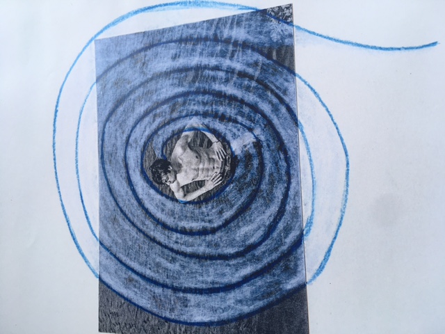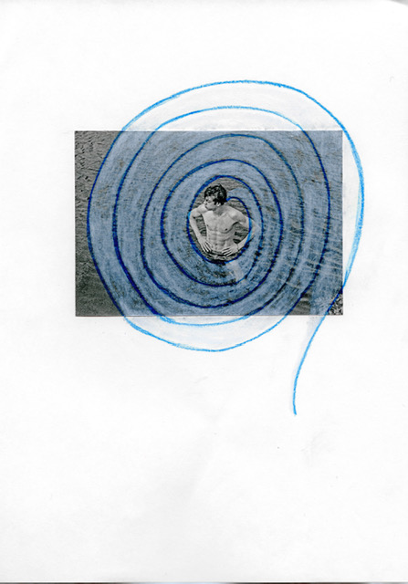 Photographie argentique, pastel bleu et mine graphite, 2020