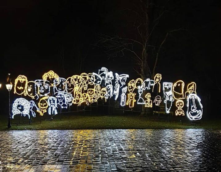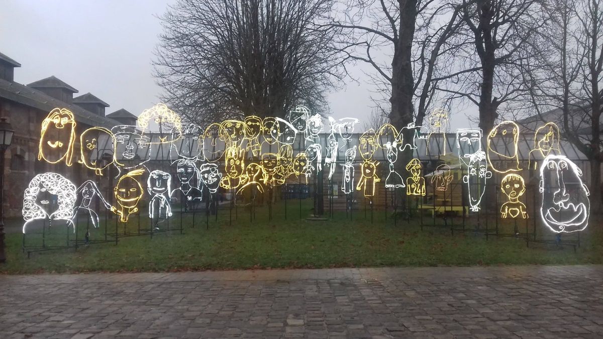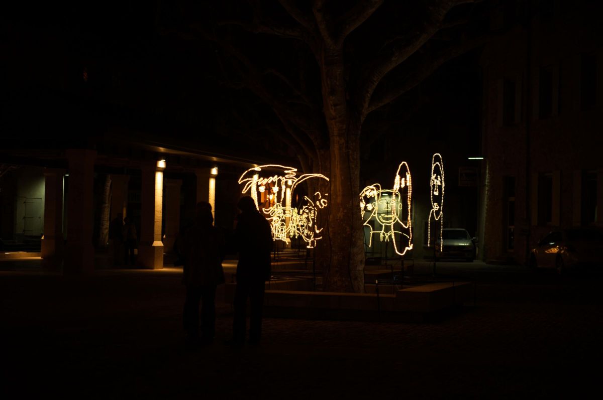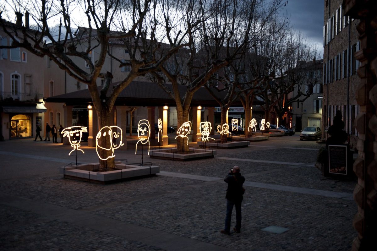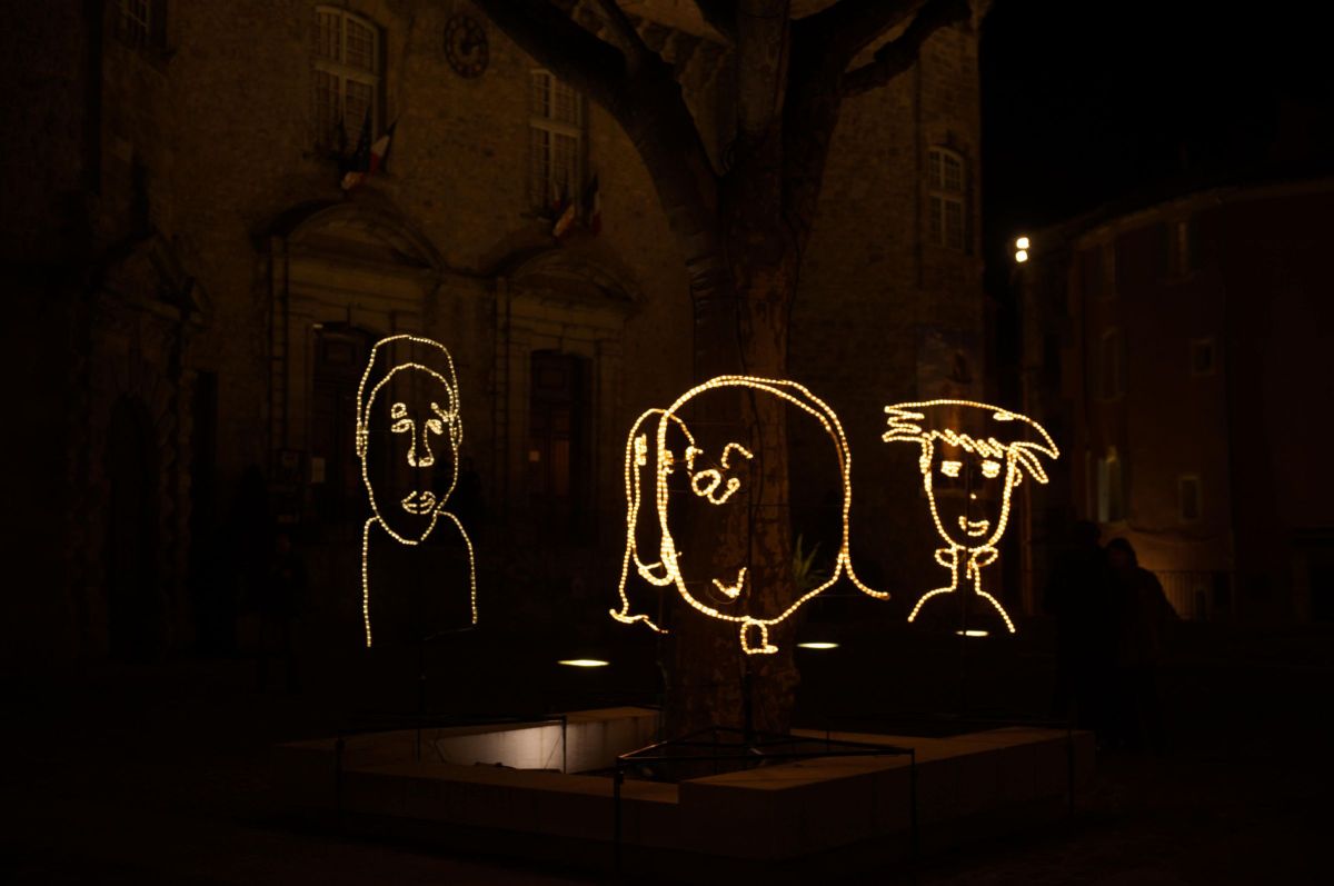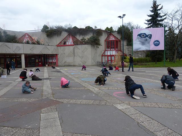 Travail réalisé avec des enfants et installé dans la ville.