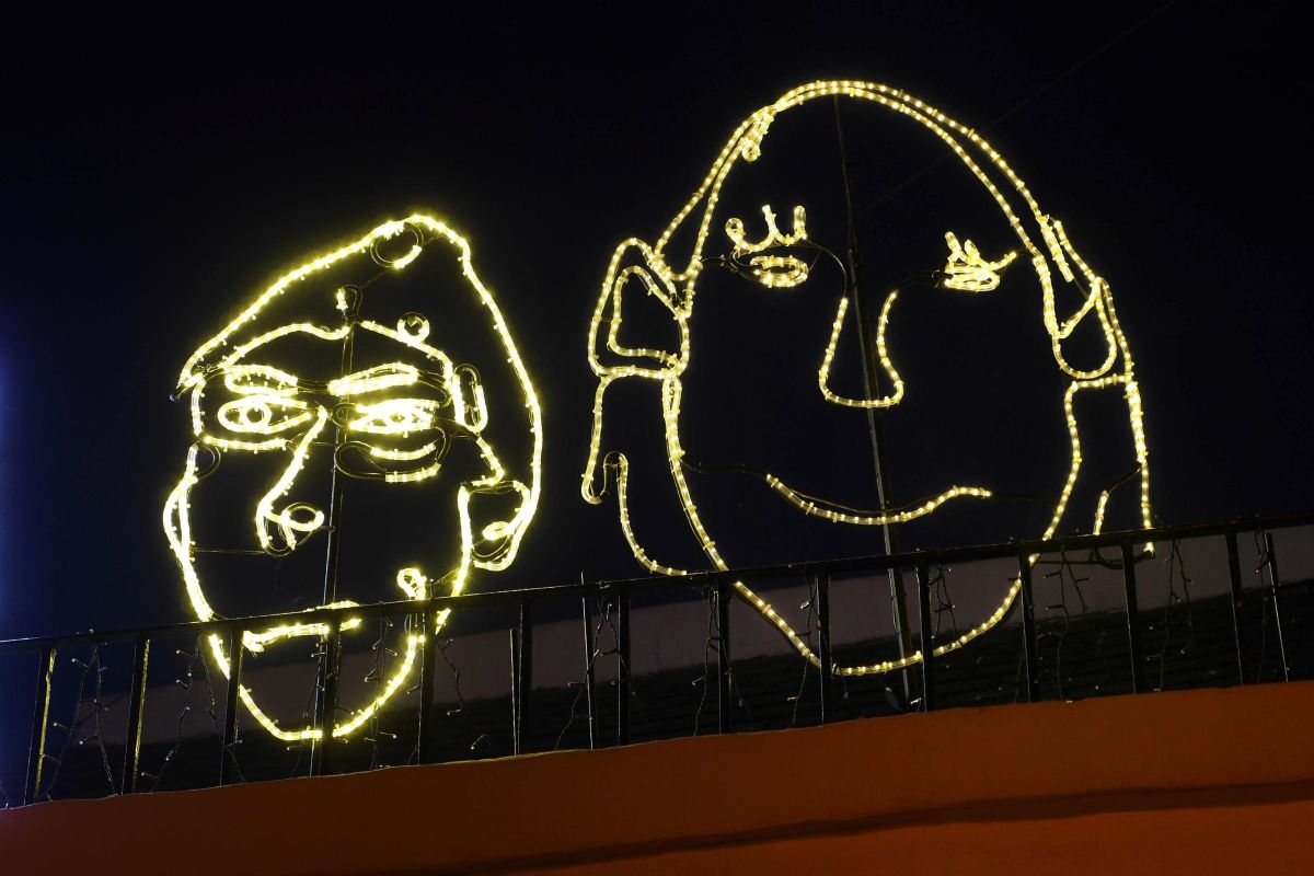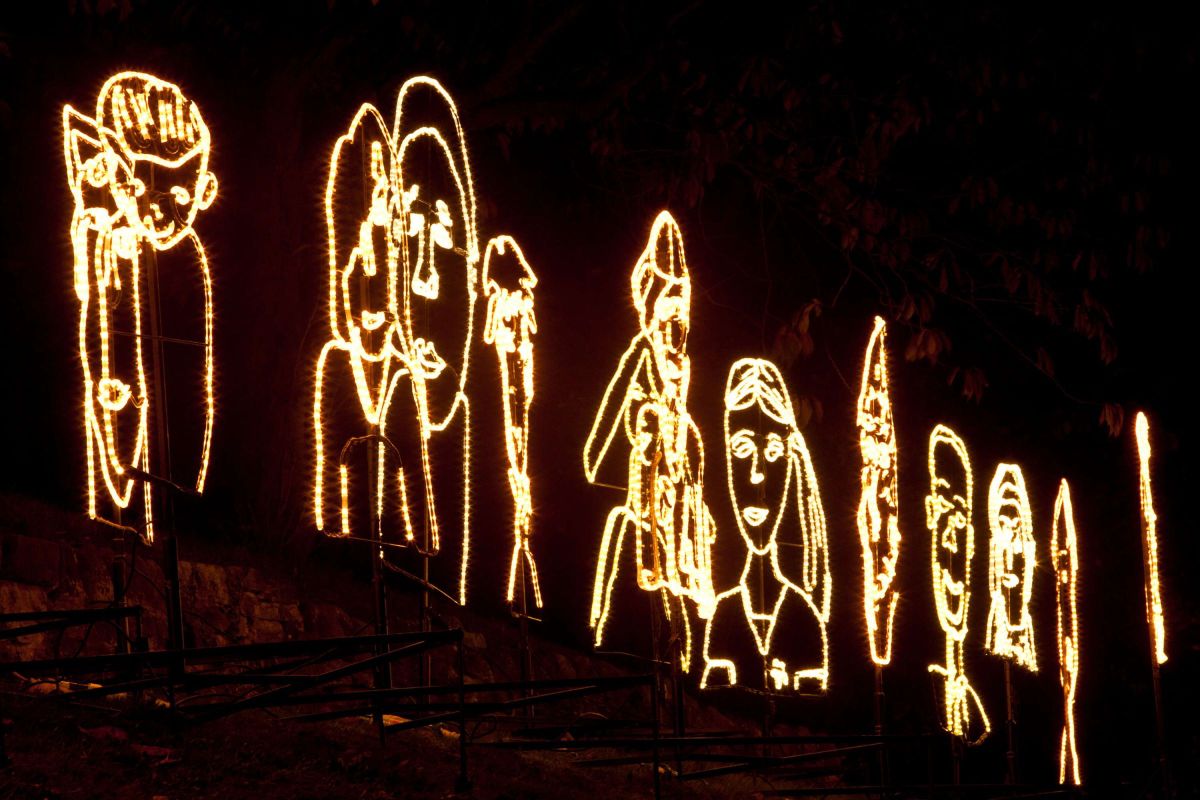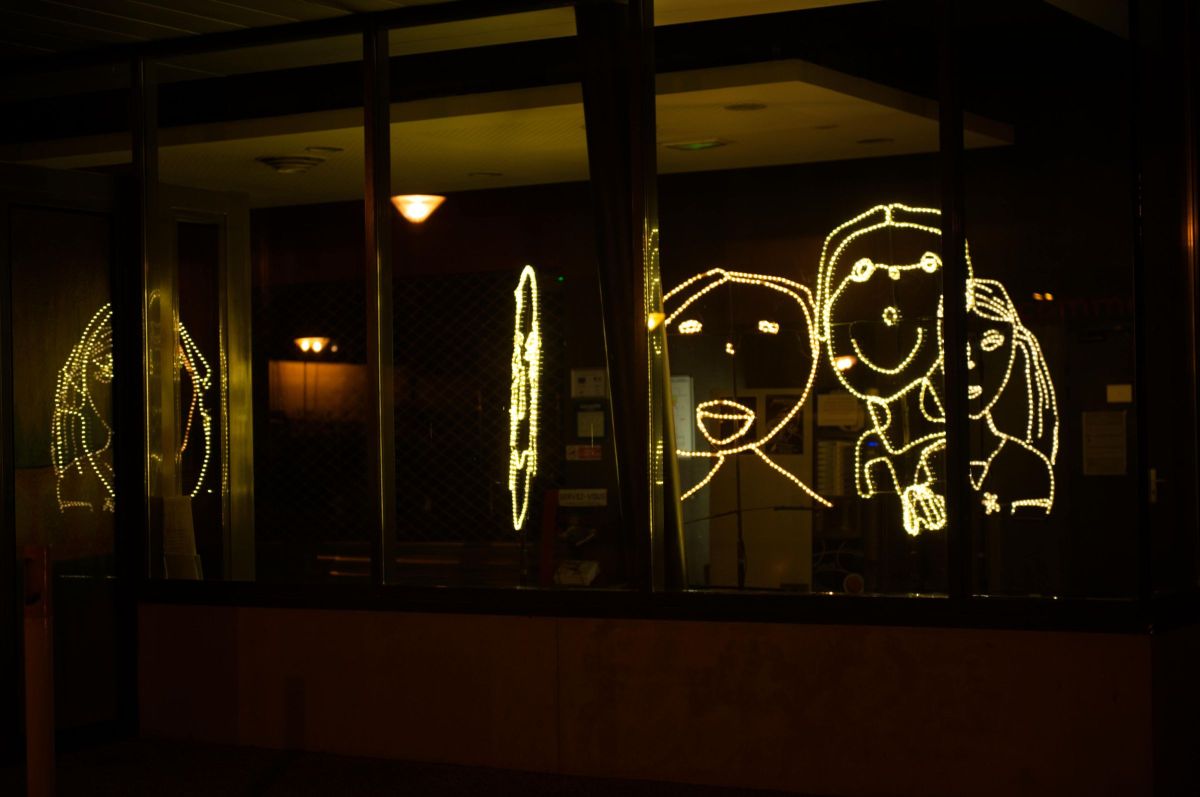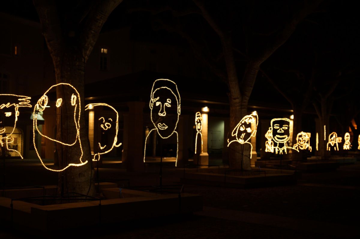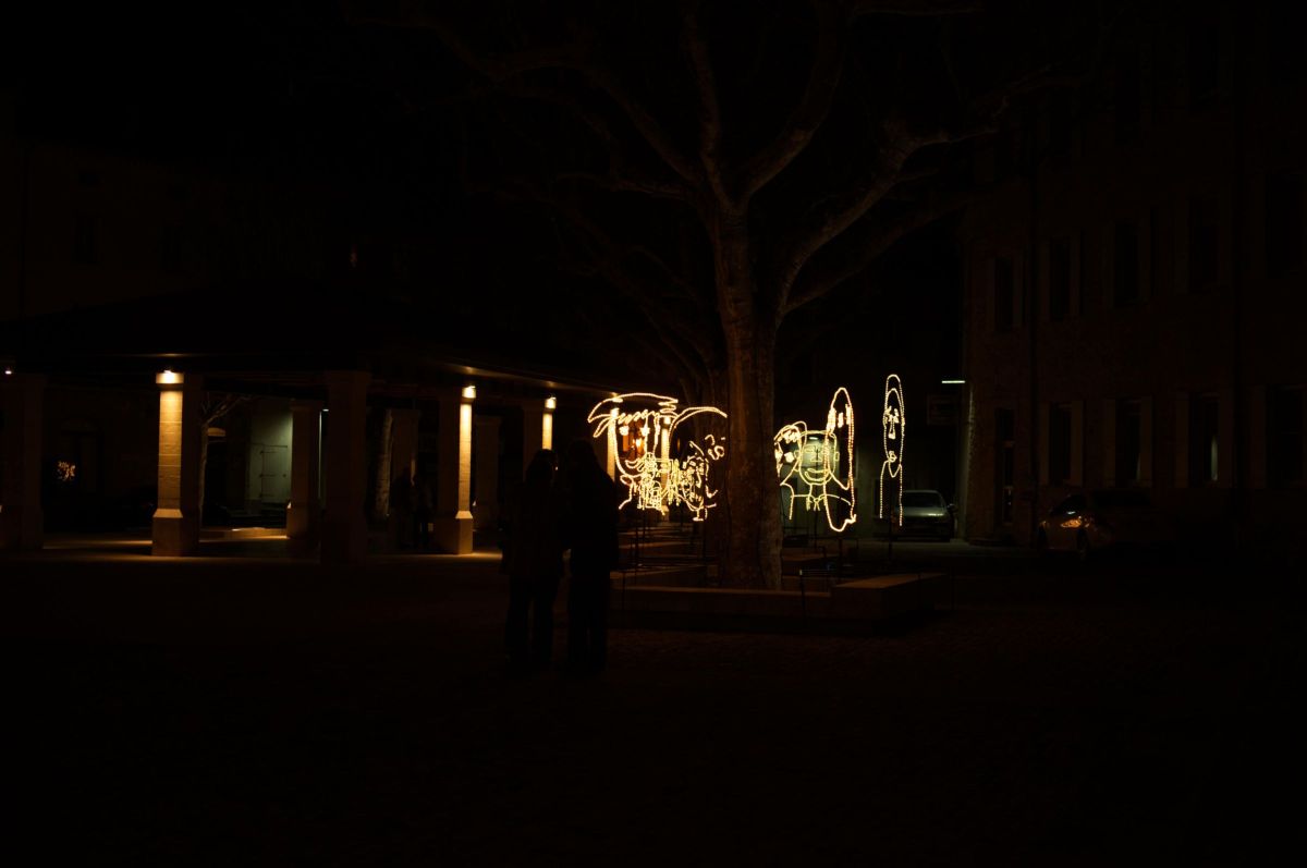 Travail réalisé avec des enfants et installé dans la ville.