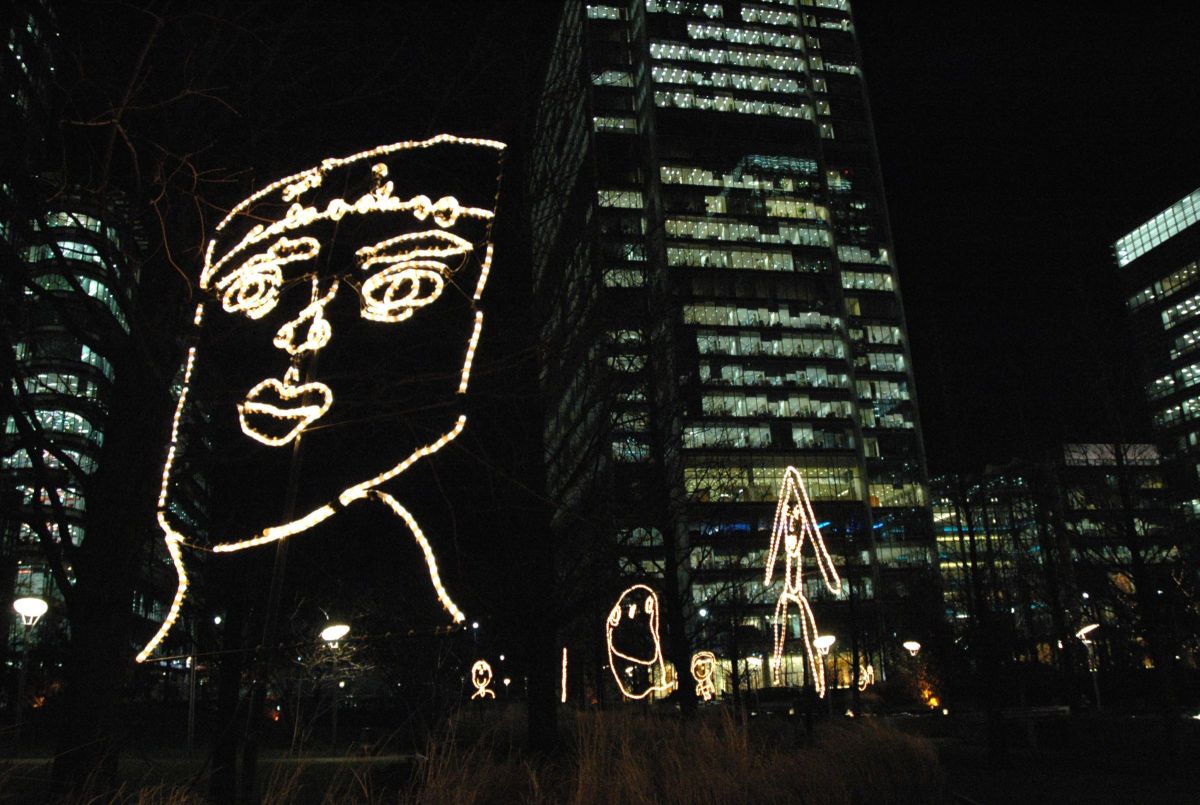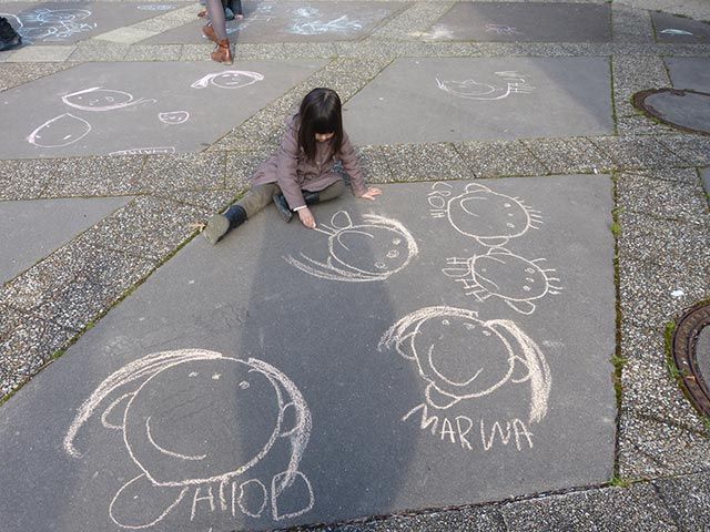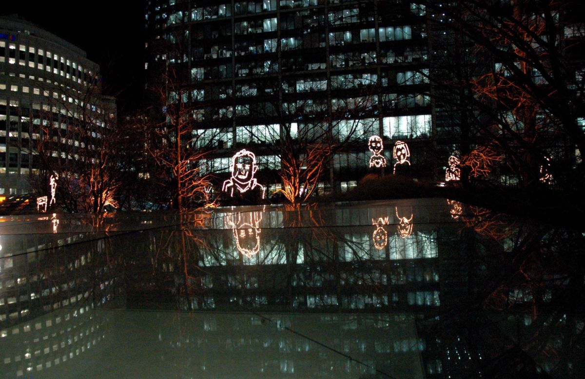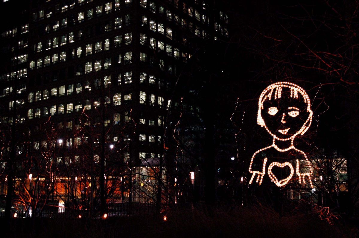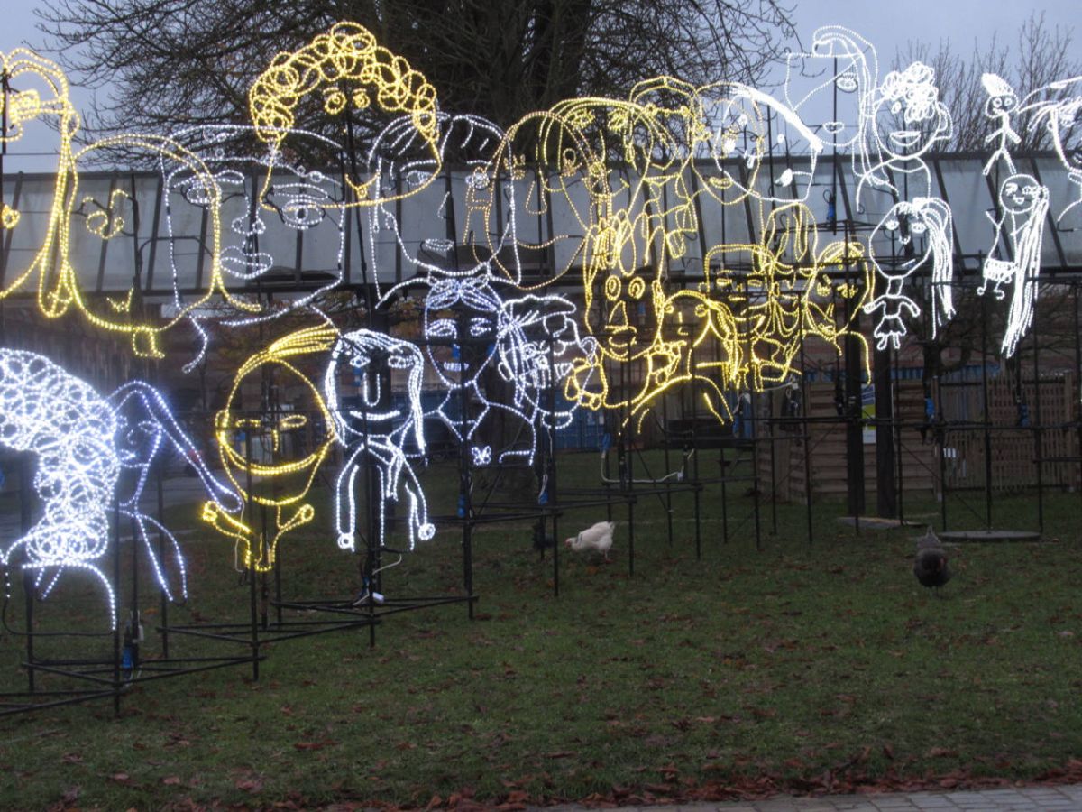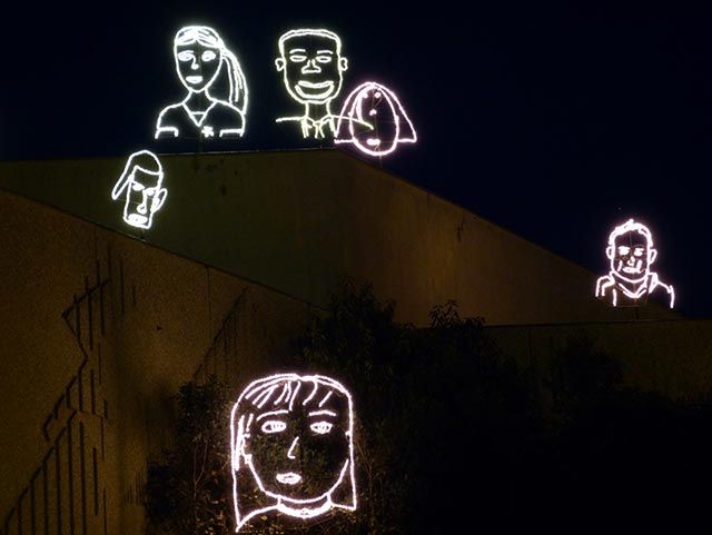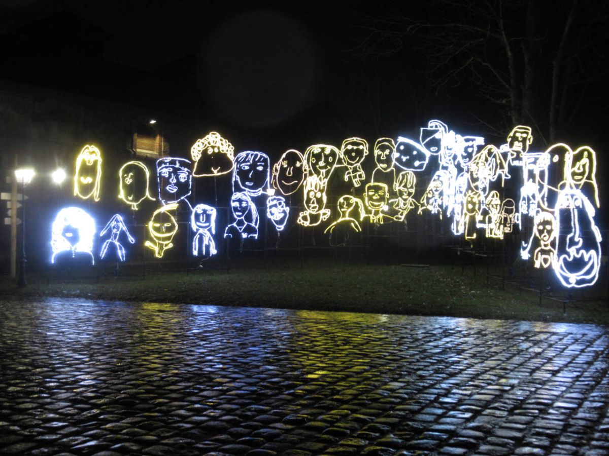 L’artiste a demandé à des enfants des écoles de l’East End de Londres de dessiner les portraits de leurs frères ou sœurs. De nombreux dessins ont été réalisés, une sélection a été fidèlement copiée et agrandie en lumière et présentée dans les lieux publics. Ce projet est destiné à se développer et à se poursuivre, comme une reconnaissance permanente de la créativité des enfants partout dans le monde.