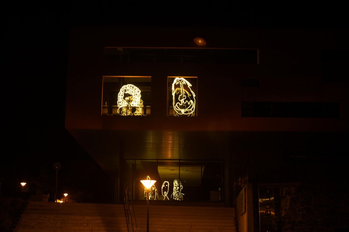 Dessins installés dans un hôtel abandonné.