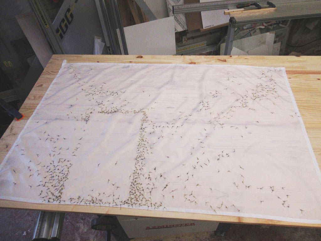 Sorties rassemble et présente le résultat de cette expérience en une séquence ordonnée. En agençant des mosaïques d’images qu’il présente au mur sous la forme de papiers peints, l’artiste reconstruitl’univers botanique de l’île, formant de ces infimes détails de véritables paysages floraux qui varient au rythme des couleurs, des saisons et de ses observations.