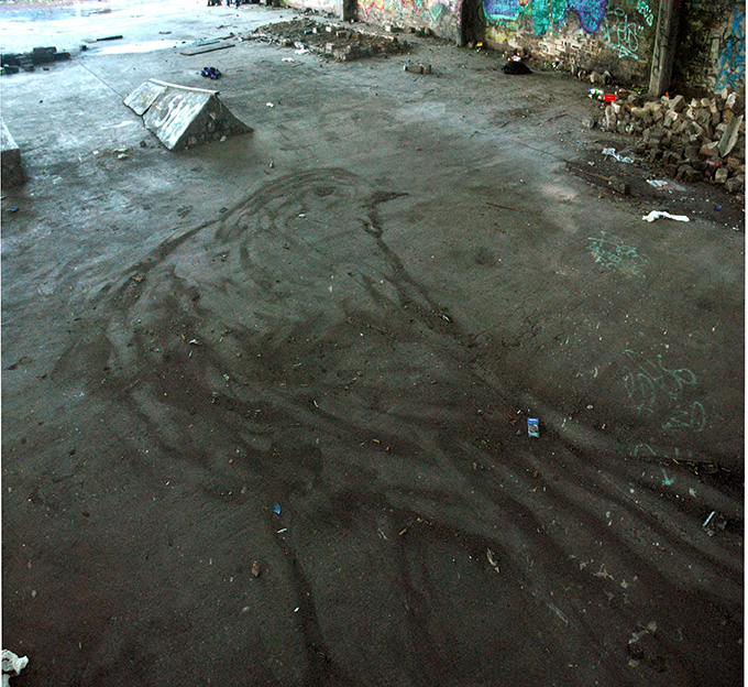 À Plume, 2010 à aujourd'hui Série de photographies d'oiseaux dessinés dans la poussière, dimension variable