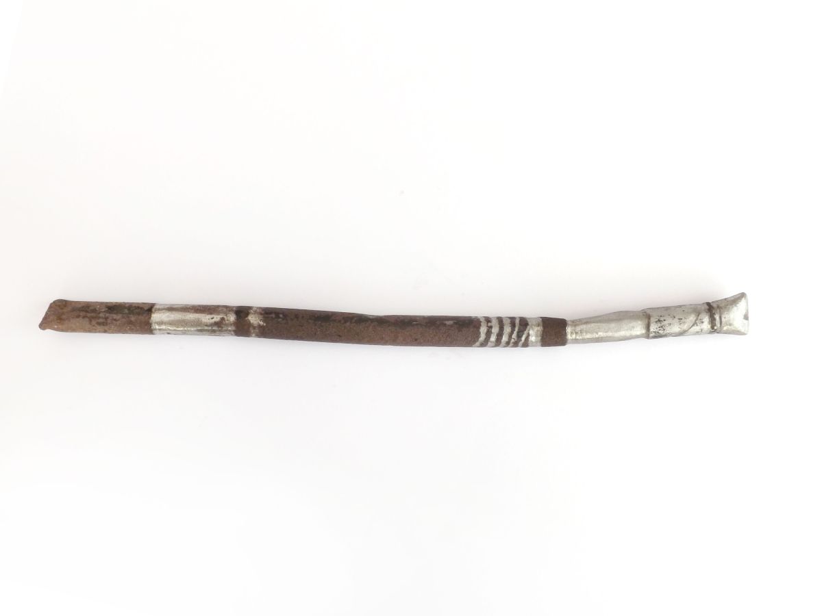 Gravure de motifs sur tuyau, métal et peinture, 25 x 1,5 x 1,5 cm