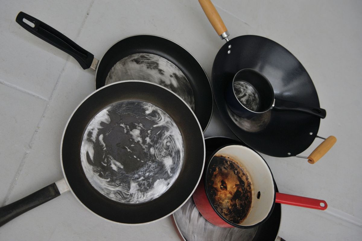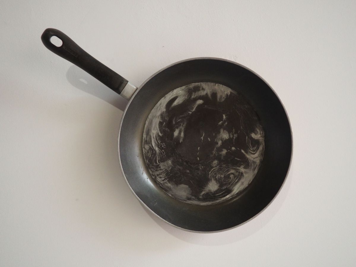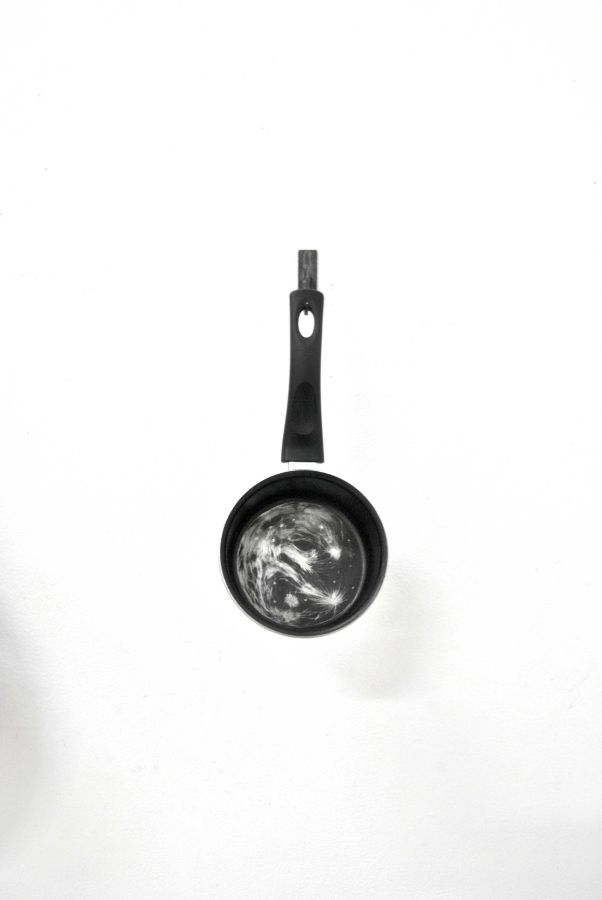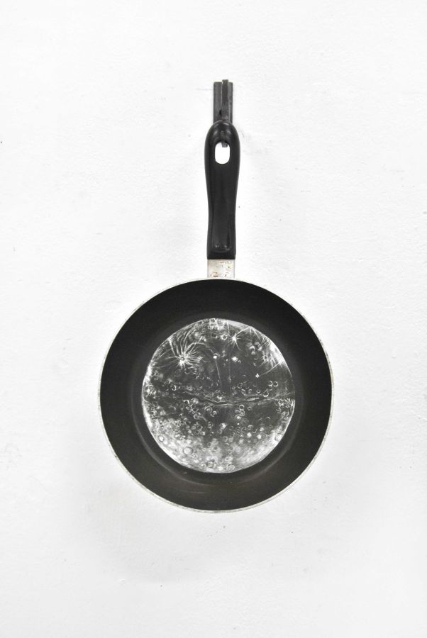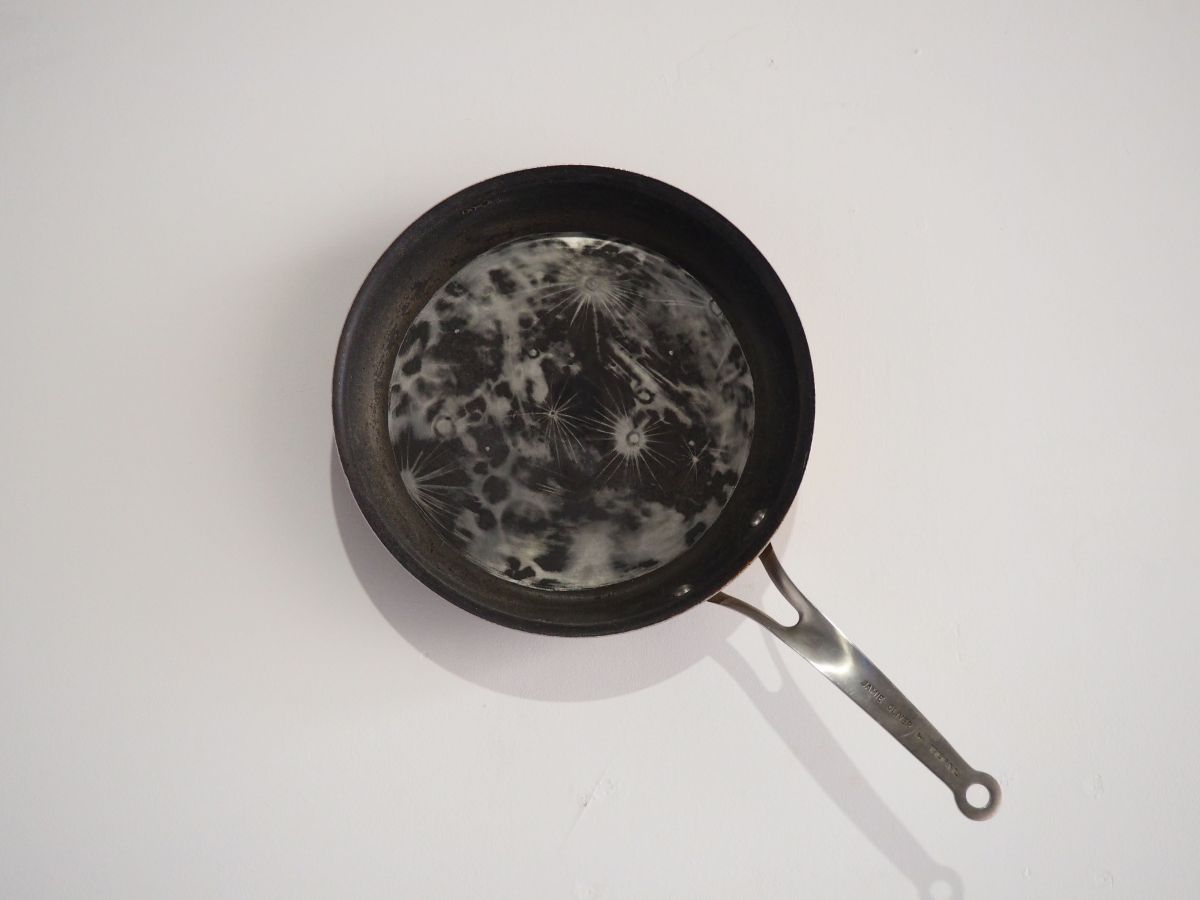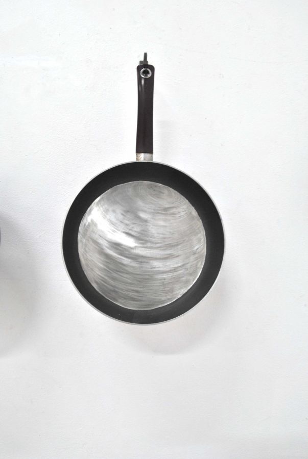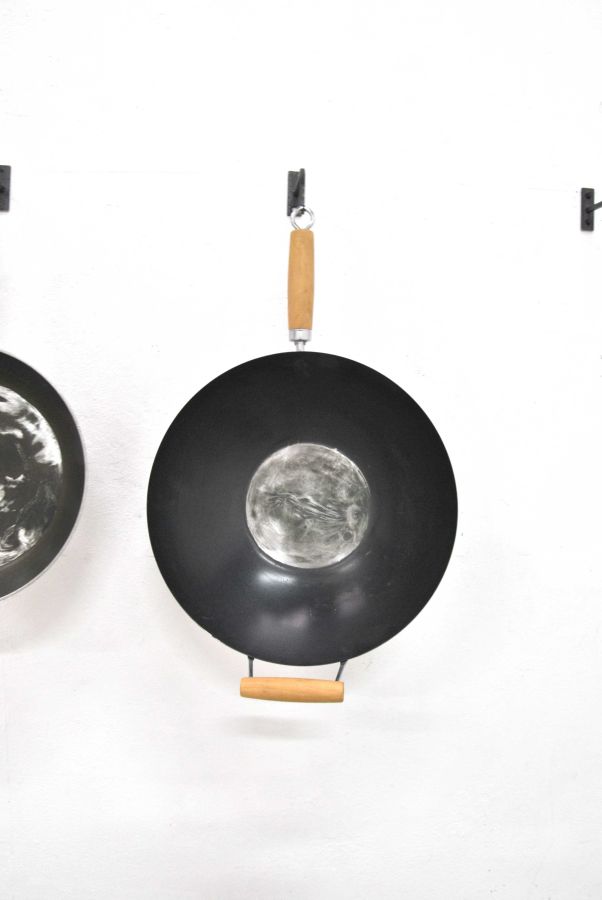 2 planètes du système solaire gravées sur poêles en téflons, installation variable