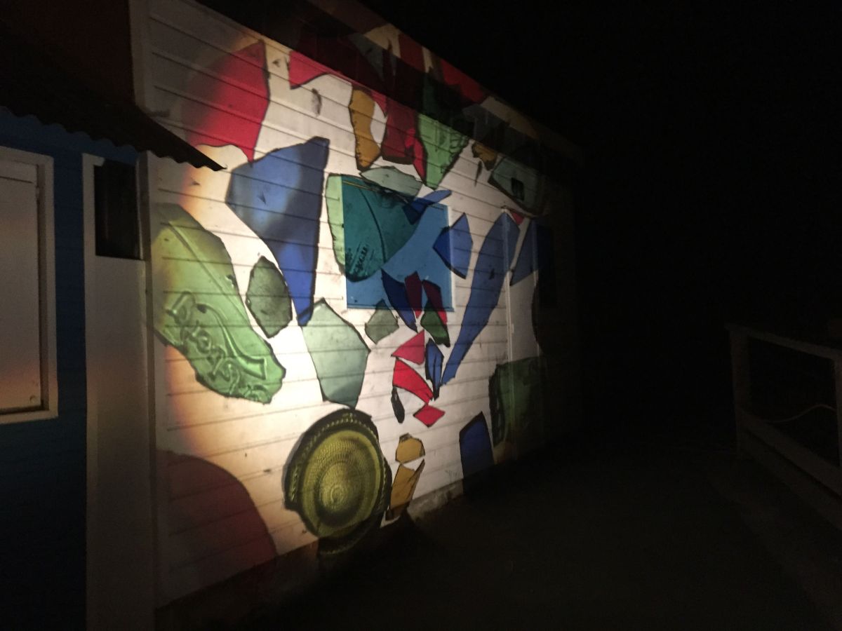 Installation lumineuse, miroir, rétroprojecteur, verres