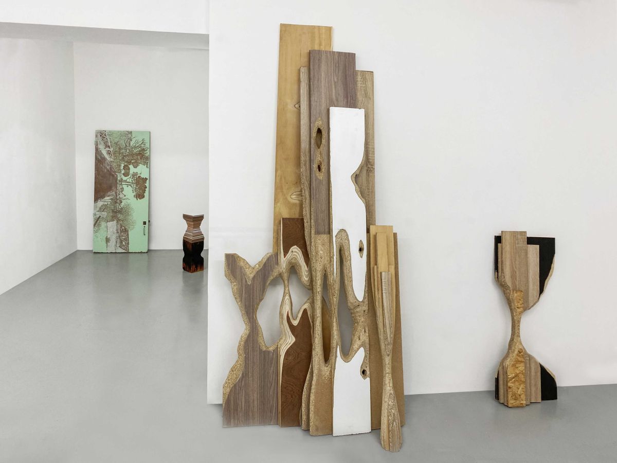 planches de laminé et de contre-plaqué colées et sculptées, dimensions variables, pièces uniques