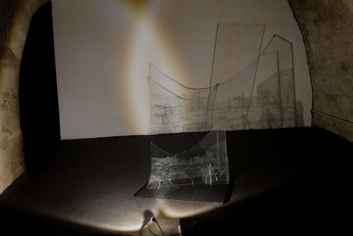 (exposé sur socle blanc avec une projection lumineuse), 40 x 55 cm, série de pièces uniques