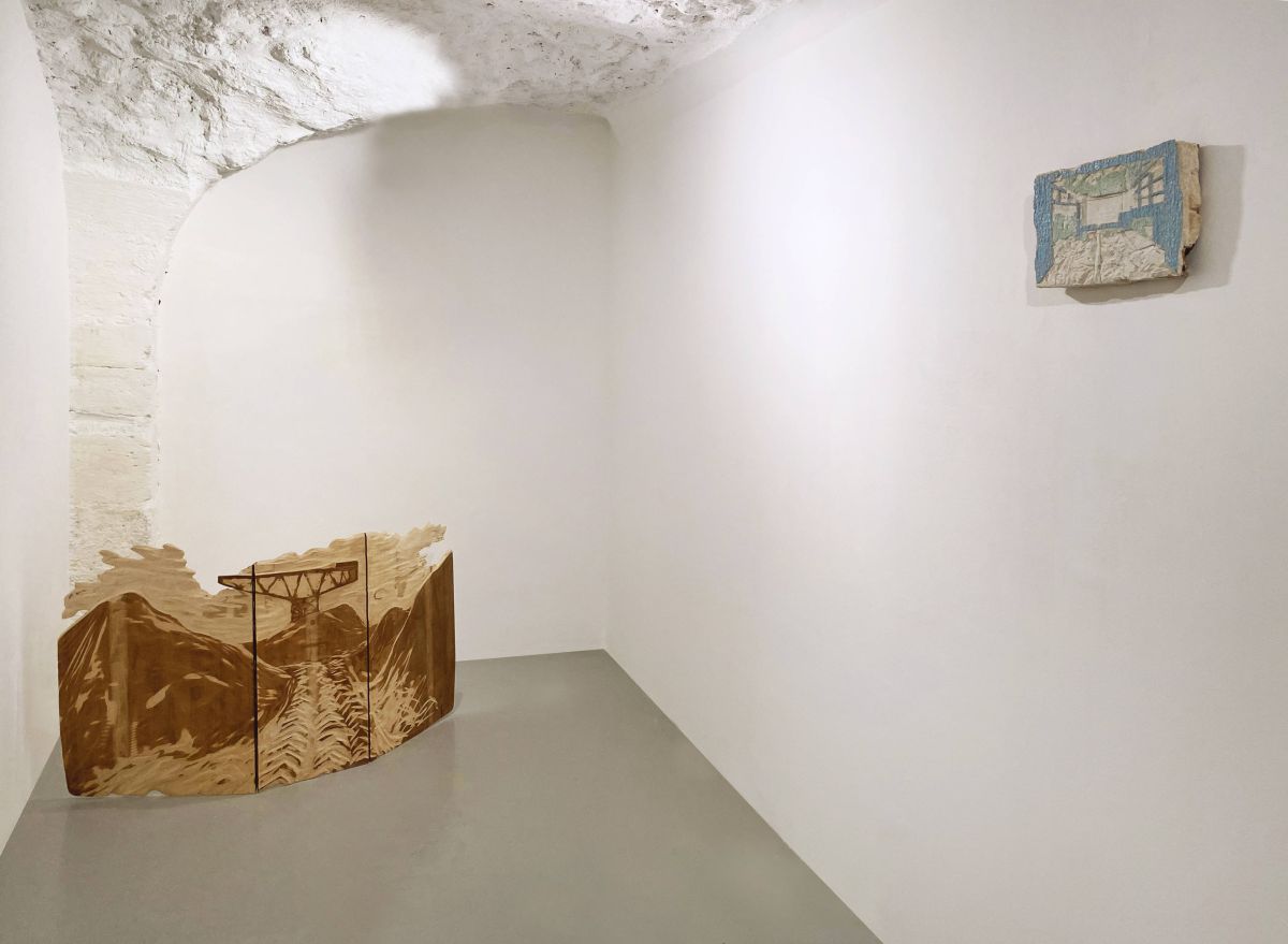 Stéfan Tulépo utilise des objets d’usage courant, produits en grande série, promis à l’abandon, à la destruction ou à la désagrégation. Ils évoquent une archéologie contemporaine, un mode de vie, une esthétique. Ils sont la matière première de ses compositions. Il en exploite leurs qualités plastiques, leurs résistances, leurs rugosités, les transforme par une intervention mécanique ou artisanale, par frottage, striures ou perçage…La porte en bois, l’ovale en bois mélaminé, dentelé et la planche à pain de la série Grattage, sauvées de la destruction, glanées au hasard de voyages, deviennent les trésors d’une pêche miraculeuse. En frottant ou en gravant la surface de ces objets, il révèle, au sens photographique, le paysage dans lequel ils ont été prélevés. Stéfan Tulépo vient de l’image, de la sculpture et de la photographie. Ces trois pratiques s’alimentent et se jouent les unes des autres dans un va-et-vient ludique et poétique. Toutes ses images se construisent en relation avec d’autres, par ricochet. Elles produisent des enchaînements d’idées, des glissements de sens, des analogies… Continental, condense cultures populaires et traditions ancestrales, confronte l’artisanat et l’industriel. Pneu sculpté dans des strates de pierres bleues, il se présente comme la légende d’Ourlet double, deux photographies glissées dos à dos dans l’interstice d’un double vitrage.Division de joie, cinq assiettes divisées en deux. La ligne de brisure met à nu la porosité de la faïence. Le doigt qui suit l’oscillation de la tranche, ressent la rugosité du centre, le froid et le lisse du glacis sur le bord extérieur. Les unes placées devant les autres, à intervalles réguliers, elles recomposent le décor minéral d’un théâtre en miniature. Qu’il est bo, cache-siphon et lavabo en faïence industrielle, couché sur un socle en bois calciné a été découpé à coup de meuleuse électrique. Il est une architecture, un paysage raviné, pétrifié comme une roche métamorphique. Ces artefacts reproduisent le phénomène d’érosion provoqué par le vent, la pluie et toutes les modifications de la croûte terrestre. Parfois, Stéfan Tulépo ravive une relation affective, un souvenir d’enfance, le moment heureux de la découverte de l’objet abandonné, glané au bord d’une mer bretonne ou transformé par les reflux des marées. Il a le goût des images culturelles chargées d’un puissant affect qui vagabondent d’objet en objet et que les gens se réapproprient, créant ainsi, une mythologie collective.Il collecte des images pour les répertorier en séries, sans cesse complétées et chacune nourrie de nouvelles pistes. Il définit des liens de parenté entre elles en adoptant un système sans hiérarchie et sans aucune distinction esthétique, culturelle ou géographique, inspiré par les classifications de l’historien Aby Warburg. Chaque image est le résultat de mouvements sédimentés et cristallisés, ainsi, les ouvrages de paléontologie et de géologie se situent dans les mêmes rayonnages que les ouvrages consacrés à la mémoire du geste et à l’inconscient. Son environnement est son terrain d’expérimentations. Il y puise son inspiration. Ses interventions extérieures naissent d’un désir attentionné envers des lieux banals et temporairement abandonnés, des non-lieux qu’il réanime par une action artistique en nous restituant leur noblesse. Ainsi, Stéfan Tulépo avait photographié il y a quelques années, un mur au Maroc puis, l’a précieusement conservé dans sa collection d’images. Le doigt de l’artisan avait tracé dans la chaux rouge les lignes horizontales et verticales des joints qui dessinaient l’illusion d’un parement de briques. Mur central, tente de reproduire ce trompe l’œil sur la tranche d’une butte de terre et de gravats d’un terrain vague à Bruxelles. Le glissement de « terrain » et d’image opère. Chez Stéfan Tulépo, le travail se construit par une idée à travers une action, la plus simple possible, pour signaler la nature fragile des choses. L’artiste admire le travail organique des vers de vase capables en se déplaçant d’ingérer le sable, de le transformer pour en excréter un composant enrichi : « ces lacets de sédiments humides, bas-relief naturel, naissent d’un cycle vertueux. Ils incarneraient le processus créatif idéal ».
