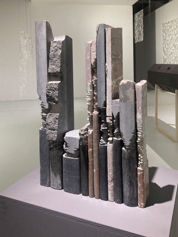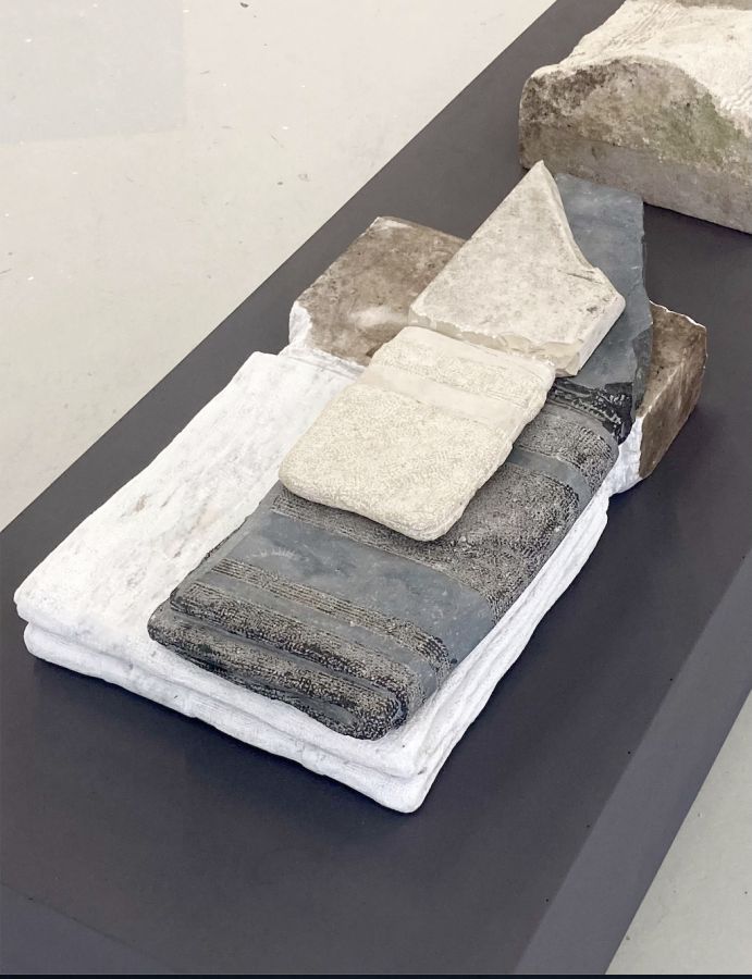 Série de serviettes éponges et gants de toilettes sculptés en different type de pierre, disposition variable
