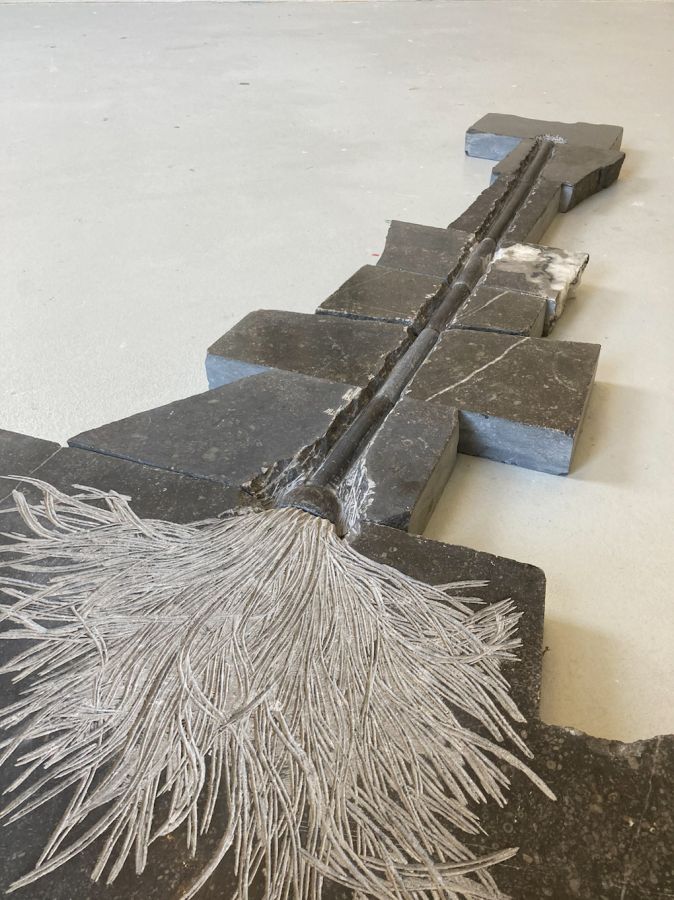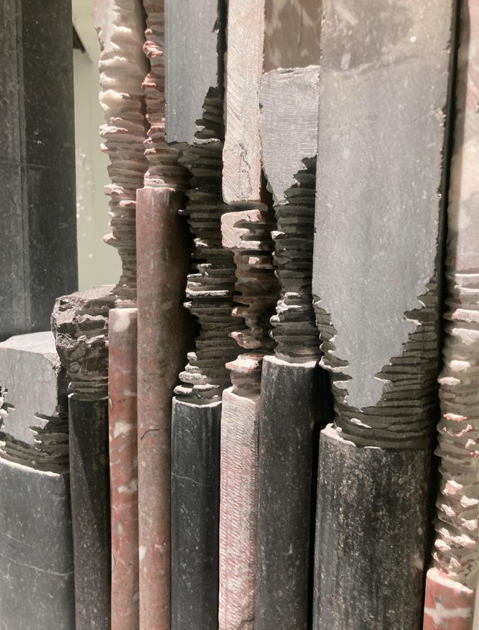 Sculpture sur pierre bleue, 8 pièces, 169x75x5 cm