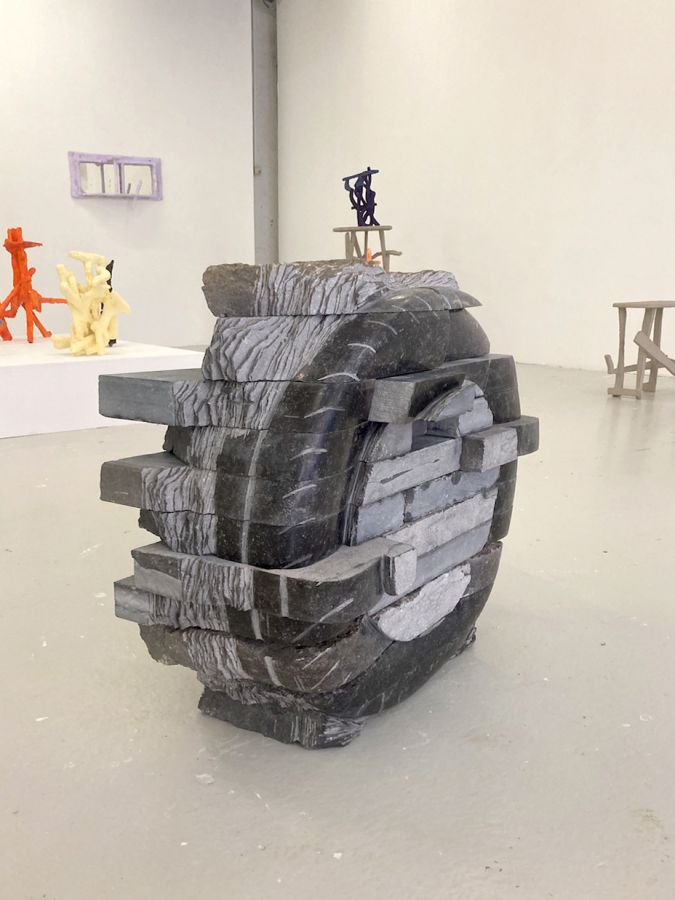 Pierres bleues sculptées et assemblées, 22 pièces, 64x70x29cm