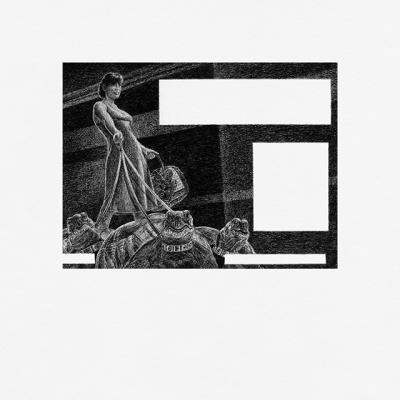 Le caviardage des slogans met en avant les assemblages d’images tandis que leur reprise en dessin à la pierre noire les plonge dans un clair-obscur énigmatique. Ces compositions imaginaires semblent dès lors présenter notre inconscient collectif en prise, lui aussi, avec cet impératif d’efficacité.