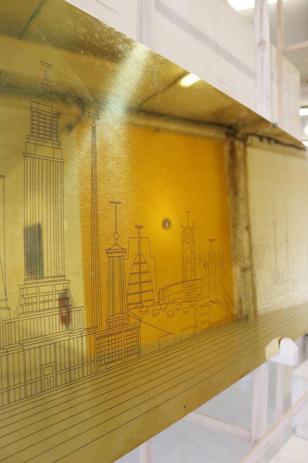 Panthéon est une installation qui, sous la forme d’une salle des trophées, présente une série d’ex-voto (les immortels) racontant les exploits du Guinness Book des Records ainsi qu’un ensemble de sculptures en cire (Graals) prenant la forme de trophées.
