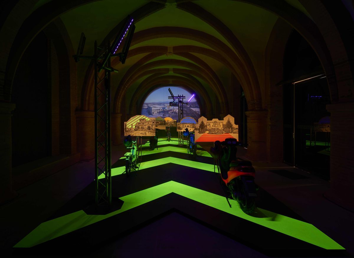 Poursuivant le projet Ultimo Impero, mené avec la commissaire d’exposition Aurélie Faure, Tony Regazzoni a sillonné l’Italie du nord à la recherche de vestiges d’immenses discothèques construites dans la périphérie de grandes villes entre les années 1970 et 1990. Pour le Nouveau Printemps, l’artiste investit l’Hôtel Saint-Jean, qui abrite la Direction régionale des affaires culturelles. Il y déploie une scénographie immersive, rythmée par des récits de plusieurs auteur·ices - Gorge Bataille, Naëlle Dariya, Camille Desombre et Aurélie Faure - des sons et des images qui plantent le décor d’un départ en soirée tandis que ces moments reviennent à notre mémoire.