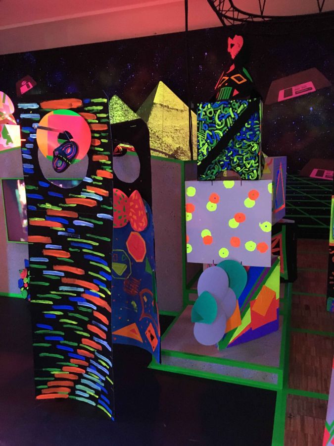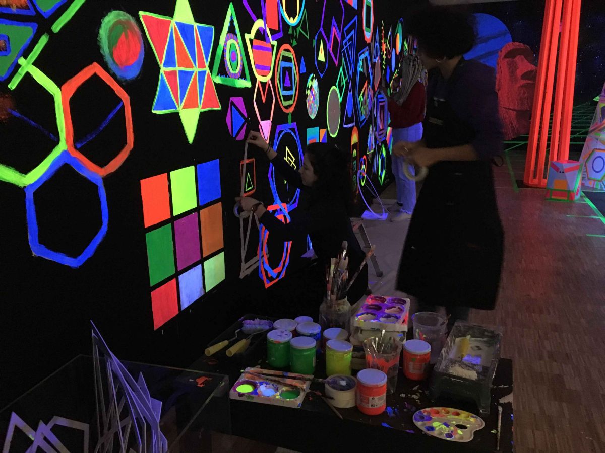 L’idée n’était pas à proprement parler de reconstituer une boîte de nuit mais plutôt de convoquer un certain nombre d’éléments physiques et graphiques faisant référence à ces lieux […]. Ma Boîte de nuit est un espace clos dans lequel les adolescents pourront appréhender diverses expériences liées au corps, à la musique, la peinture et l’image : DJing, danse, mais aussi création de décors peints, de mises en scène et en situations avec la lumière noire. C’est une boîte d’expériences de la nuit. Un jeu de mot reposant à la fois sur les sens propre et figuré.