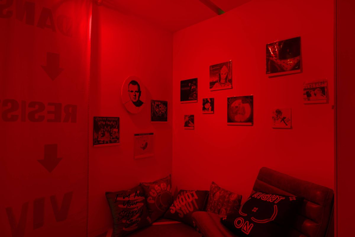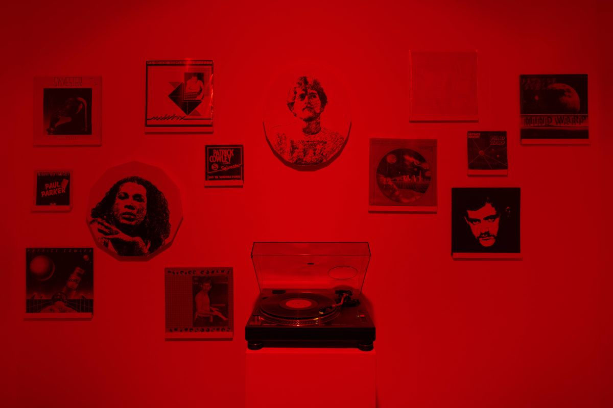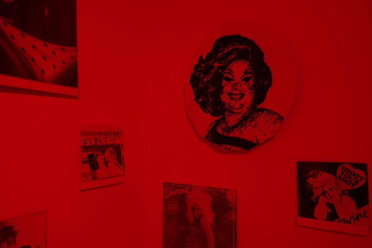 La Chapelle, seconde partie de l’exposition, est imaginée en salle acoustique. Une sélection at large de disques de Hi-NRG et leurs pochettes à double-entendre homoérotiques, sera ainsi exposée et disposée à l’écoute et à la danse. Pendant que les paroles de tubes de Hi-NRG, camp et politiques à souhait - comme le “Shoot Your Shot“ de Divine, le “So Many Men, So Little Time“ de Miquel Brown ou le “Male Stripper“ de Man II Man - ornent des coussins imprimés où se remettre de son intense dance-routine. Au mur les portraits pyrogravés de Divine, Patrick Cowley, Sylvester ou Ian Levine, dont les tubes sont passés de la moiteur des discothèques aux manifs de rue, s’imbriquent en une nouvelle trinité des saintes et saints de la Hi-NRG, devant laquelle il convient de se prosterner.