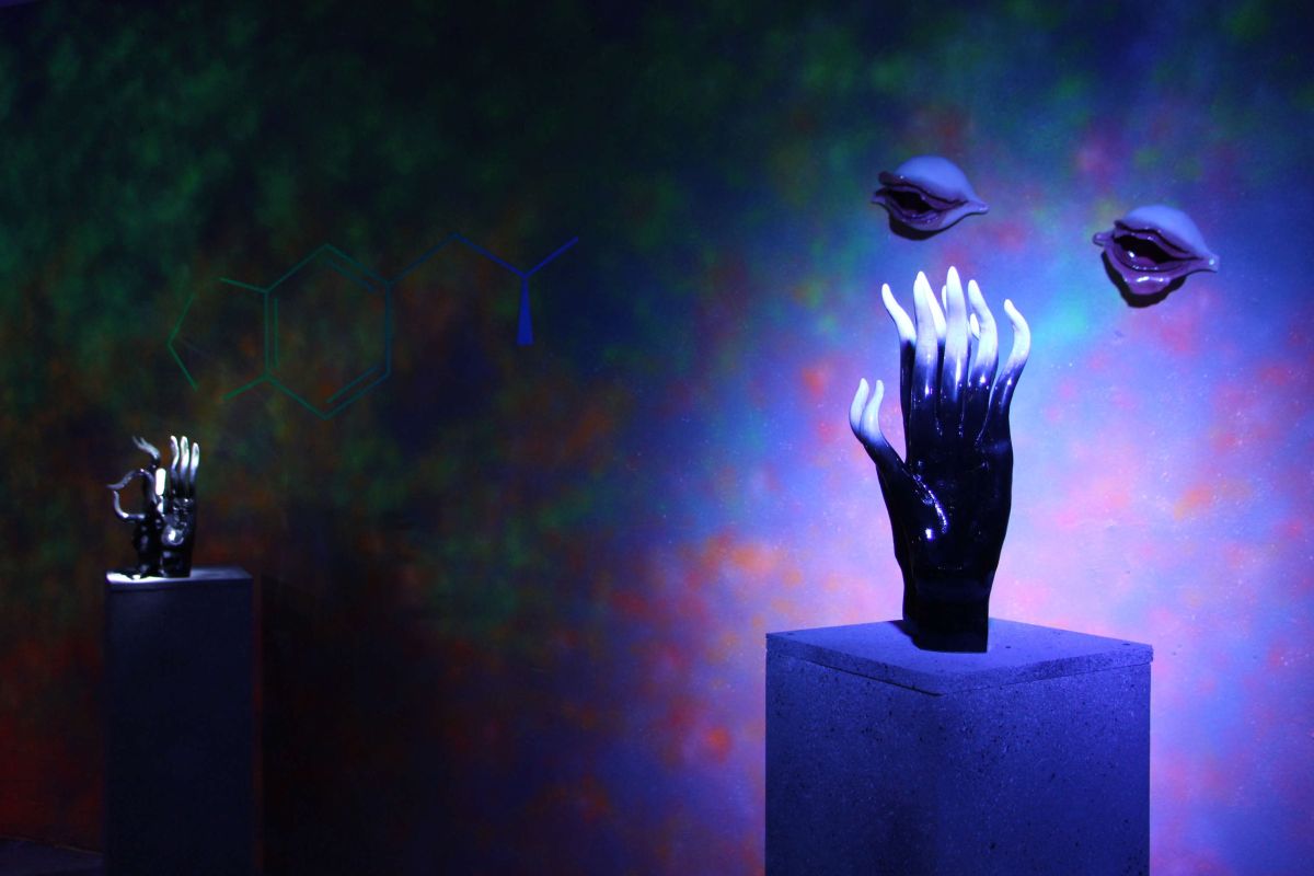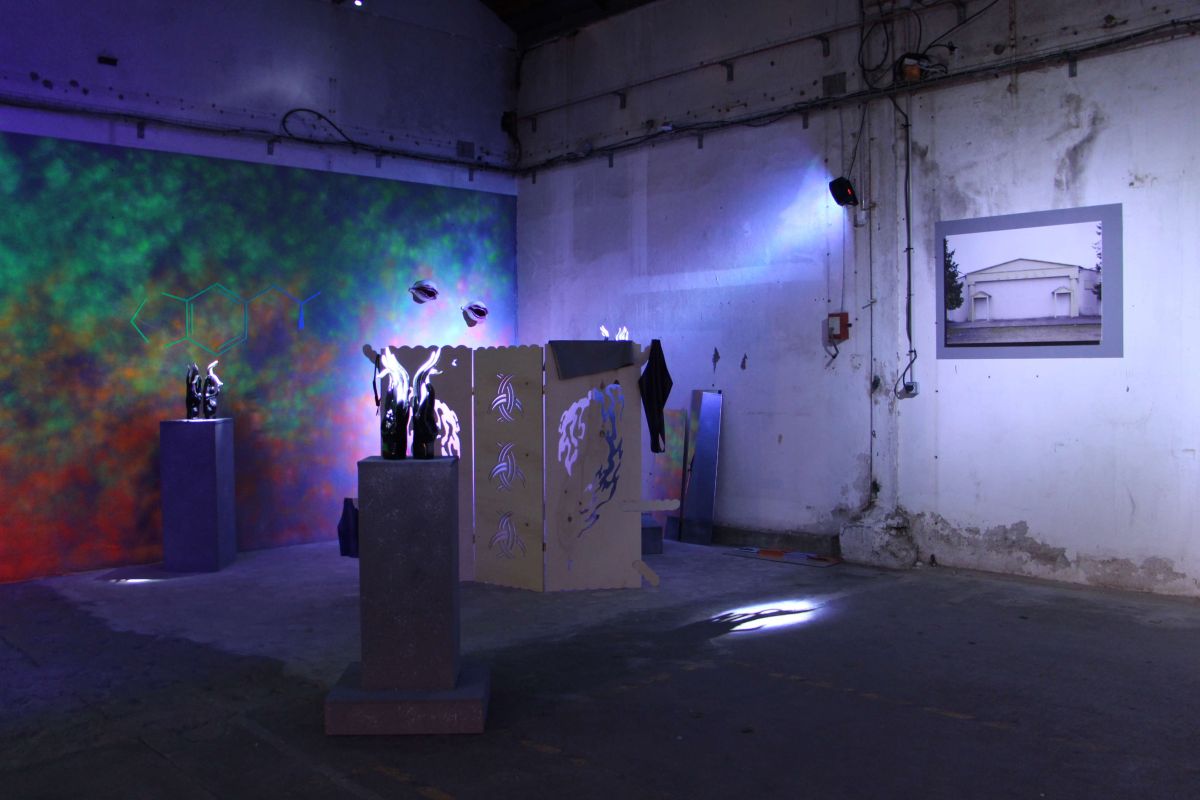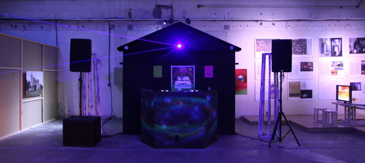 […] Tony Regazzoni en reprend le titre mais aussi la méthode pour produire un autre objet trans : le club-exposition. Mâtinant les codes de la boîte de nuit de ceux de l’exposition, il délimite un espace séparé au statut problématique. […] Un espace d’exposition avec médiation et accrochage mais ouvert exclusivement de nuit. Une exposition dans l’exposition curatée par le DJ. Une backroom-cimaise, un diorama avec Glory Hole intégré (mais métaphorique) et meurtrière de voyeur. L’artiste y est DJ pour son propre vernissage, il mixe les tubes des autres et signe une méta-œuvre incluant celles des artistes et auteurs qu’il a invités.