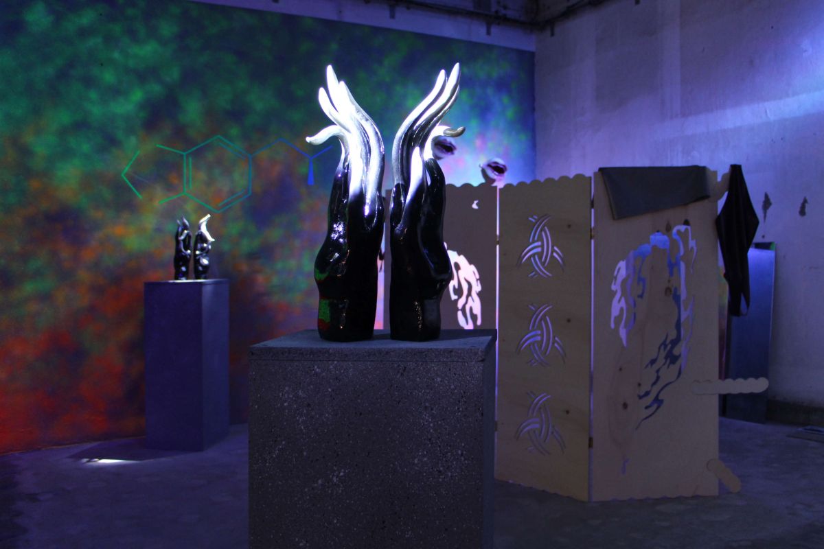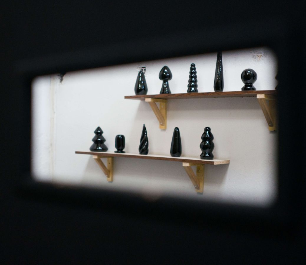 Autour, Regazzoni égraine, par le biais des invitations lancées à d’autres artistes et auteurs, des formes culturelles, discursives ou artistiques procédant de cette même affirmation dé-normalisante et festive. C’est dans la jouissance des formes et la mise en scène jubilatoire de ces diverses voies d’émancipation que l’exposition nous conduit, entre documents, œuvres d’art, éléments dramaturgiques et scénographie-lumière, de la piste de danse au fond de la backroom […].