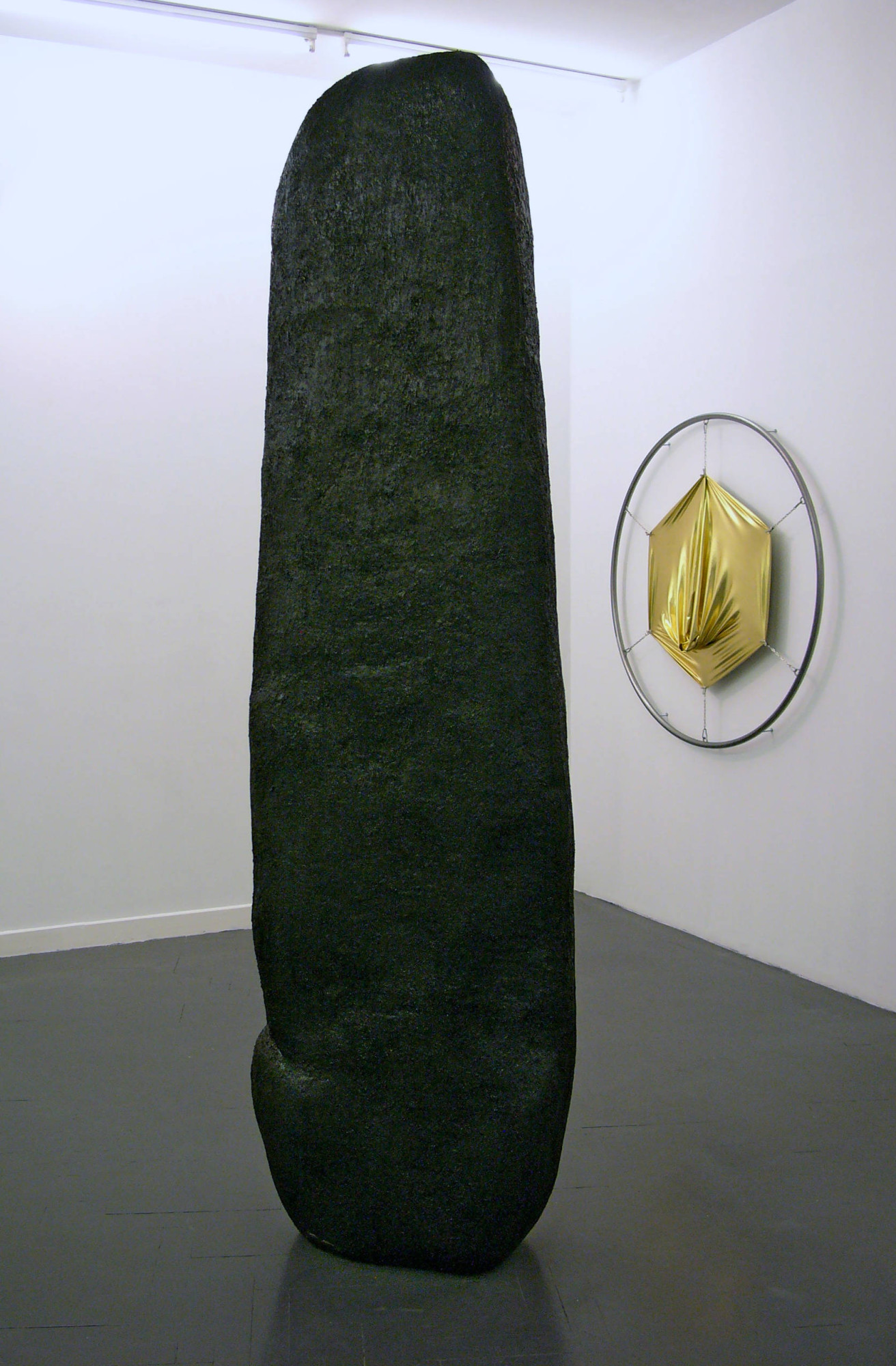 […] Quel rapport entre le dialogue socratique, les backrooms, les mythes grecques ou les menhirs ? C’est la question des rituels, des codes et des symboles qui guident les comportements humains. Ces codes reposent-ils sur une vérité qu’ils incarnent ou ne sont-ils que des simulacres ? L’exposition joue sur l’illusion (Master Black Carpet) et le camouflage (Black Curtain) sans pour autant répondre à la question. L’aller-retour est permanent entre le vrai et le faux, l’essentiel et le superficiel, le naturel et le culturel, l’animal et l’intelligible sans possibilité de déterminer un point d’origine, un point d’où partir pour savoir où l’on va, quelle est la démonstration. […]
