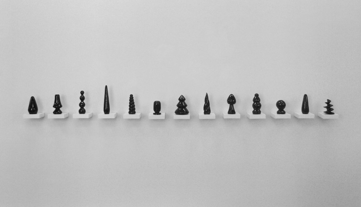 […] Inutilisables, les faux plugs de Tony Regazzoni sont des imitations faussées d’un objet qui est déjà en lui-même un substitut. On retrouve cette notion de copie de copie avec la série des Carpet, ces fausses peaux dont les motifs ou le grain sont des reprises des simili-cuirs.