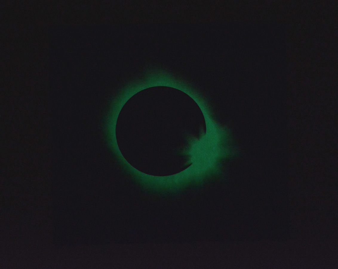 Sérigraphies phosphorescentes sur plaque de carbone, cadre en polystyrène sculpté, bois, crépi, peinture acrylique