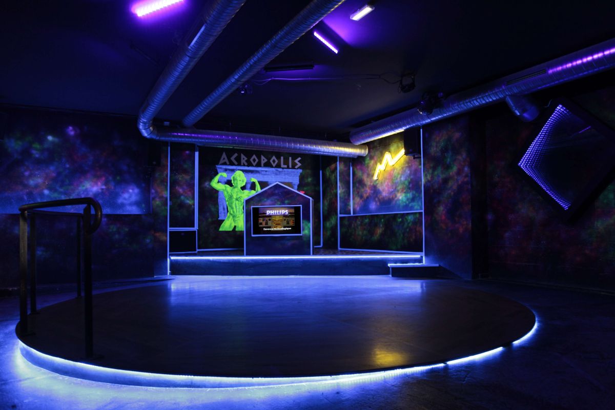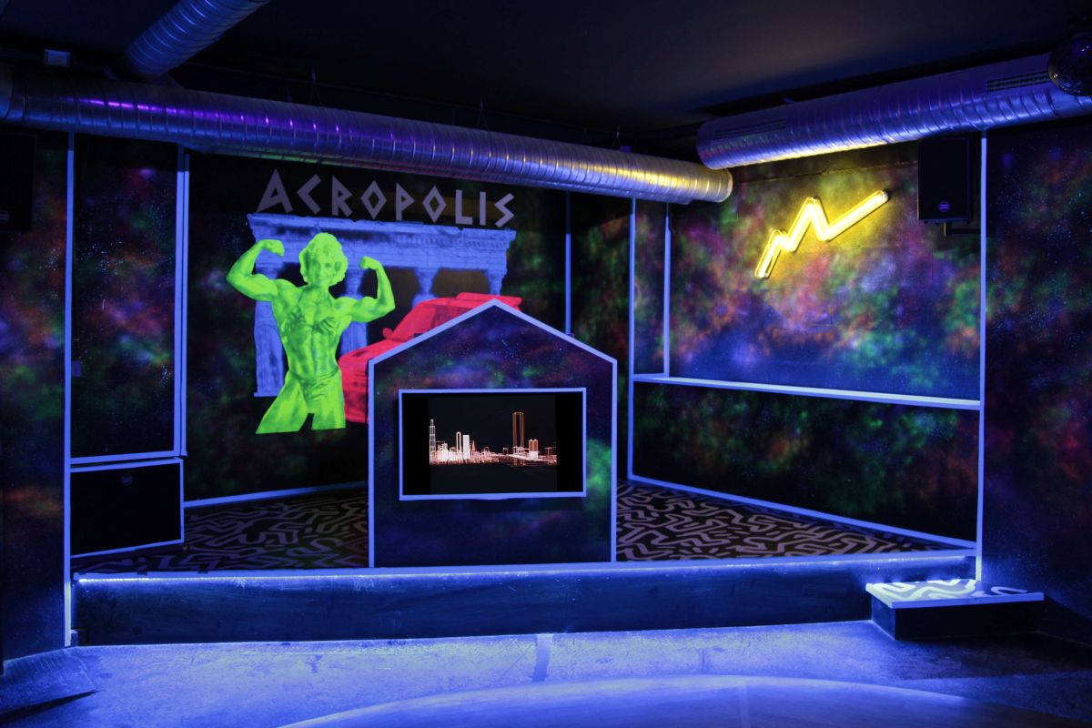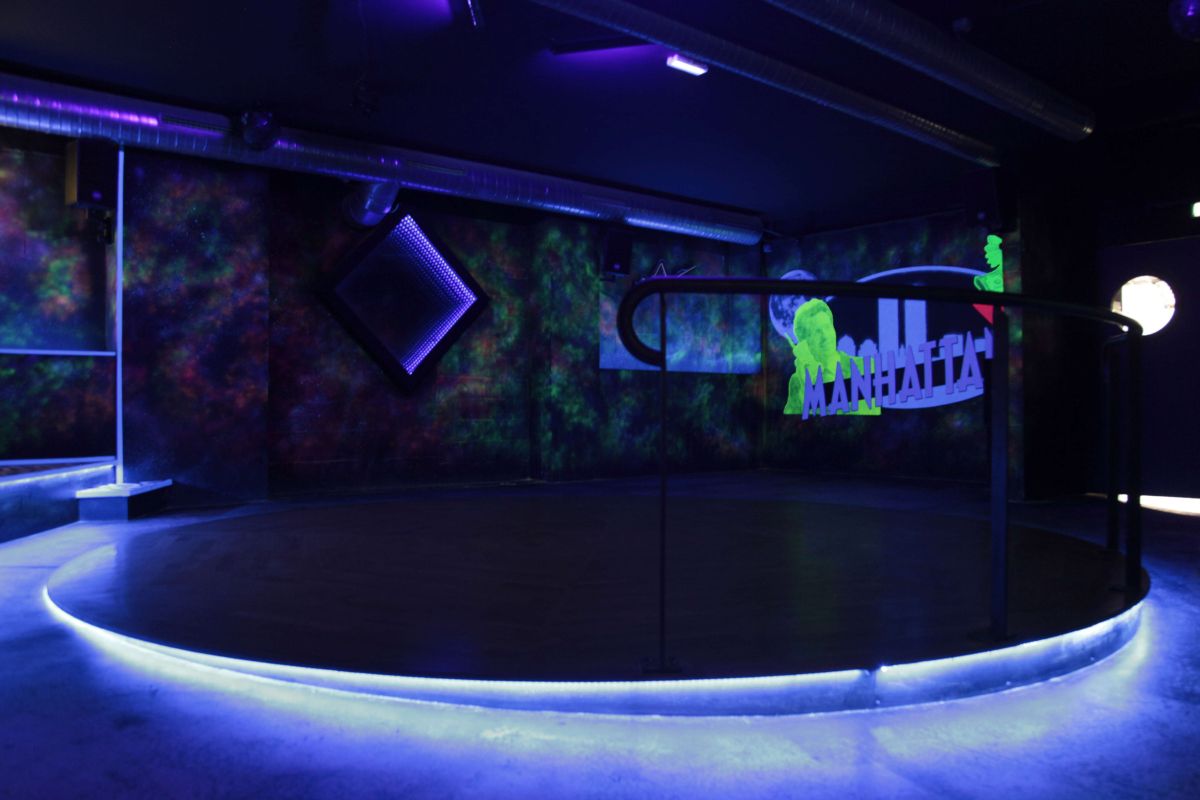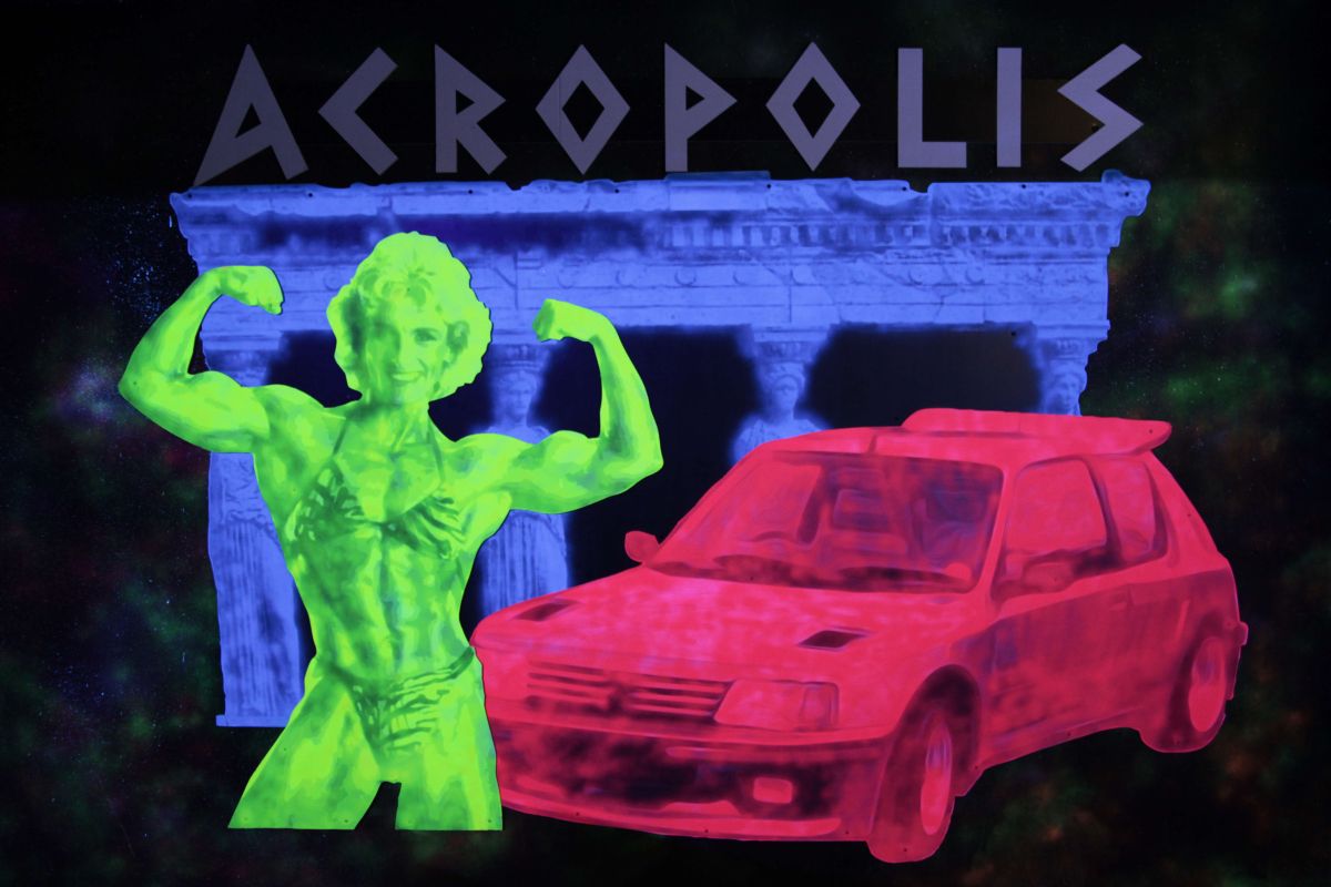 Monde nocturne, célébrations rituelles, phénoménologie des lieux de la fête sont aux racines des Mythologies du dancing, cet ancêtre de la boîte de nuit, objet architectural sans jour et sans fond. Dans la lignée de sa Boîte de nuit présentée en janvier au Studio 13/16 du Centre Pompidou, ce sont les festivaliers que Tony Regazzoni entend faire danser en marge de l’espace défini par la scène musicale et sa fosse. Au vocabulaire de la fête, l’artiste ajoute celui de l’espace et de l’image : images à plat et en creux d’un décor éphémère défini par la musique, la lumière et la transe.