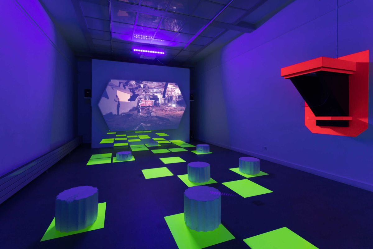 Construit dans les années 80, l’espace d’exposition présente tous les atouts d’une discothèque. L’artiste s’empare du bâtiment et déploie habilement un panel de techniques empruntées aux logiques du spectacle. Par le simulacre et le truchement, il crée sans complexe une série d’illusions d’optique lo-fi et se joue des faux-semblants. Les expositions précédemment réalisées par l’artiste ont sûrement été le préambule à celle-ci.