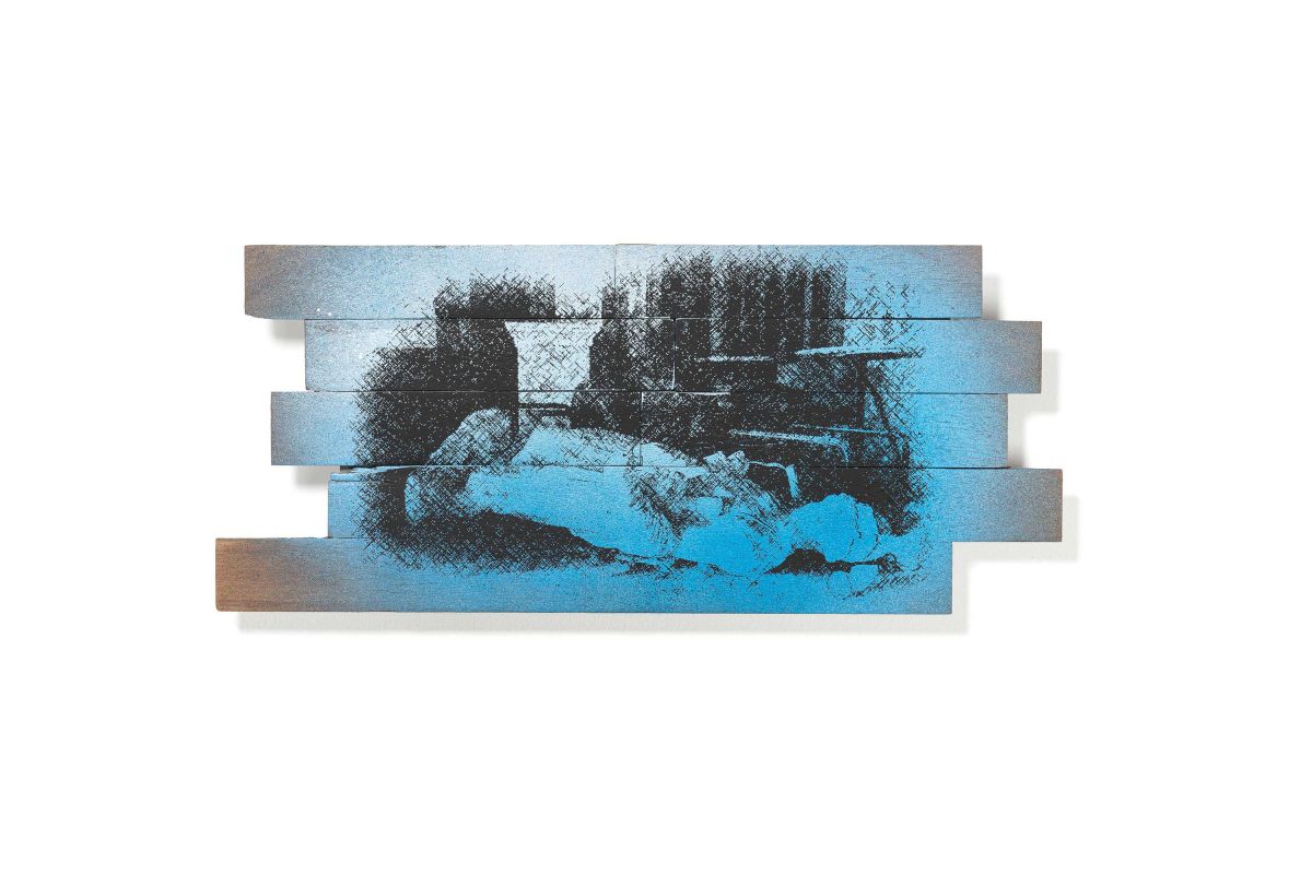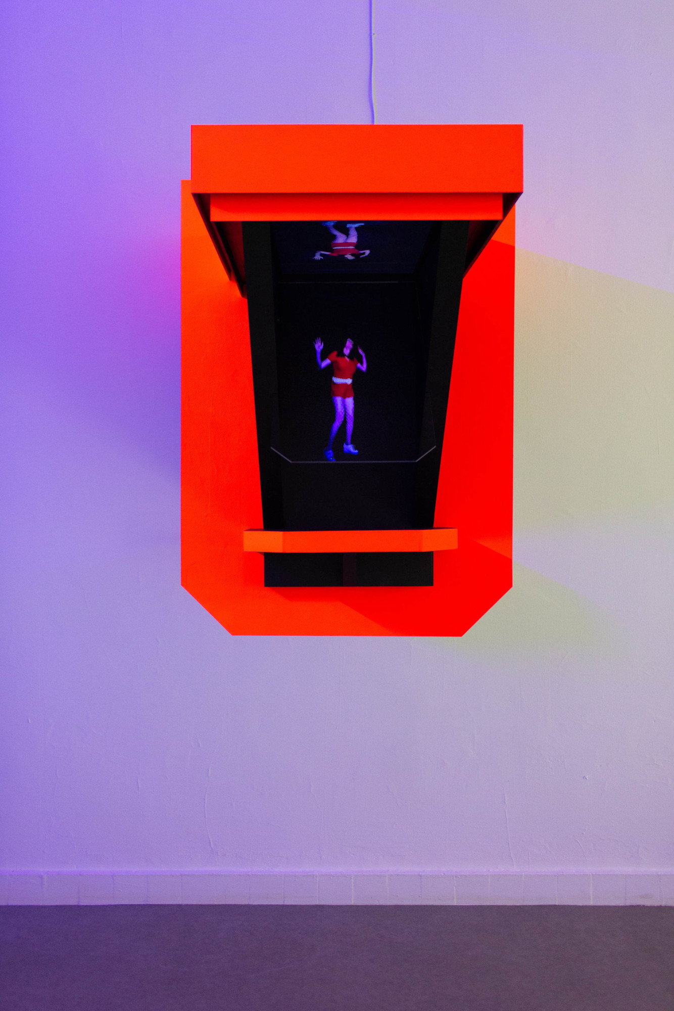 Vidéo, écran TV, bois, peinture, Plexiglas, 105 x 70 x 83 cm