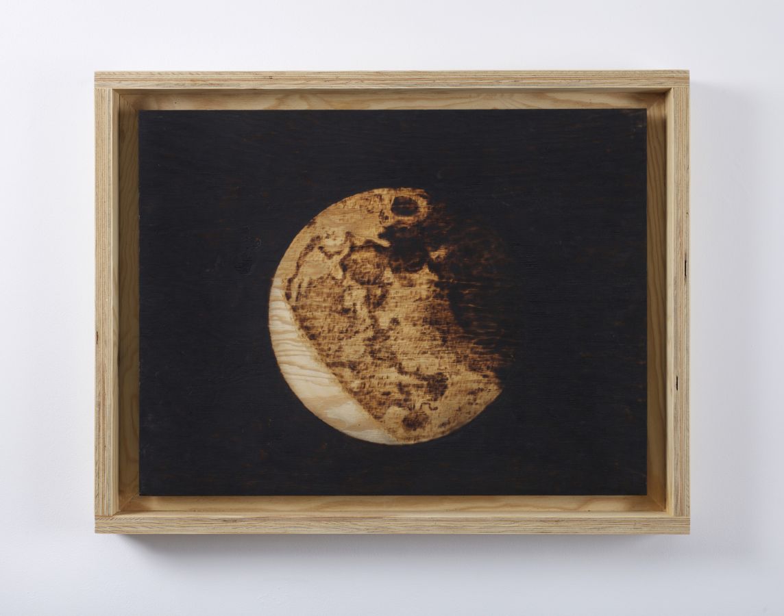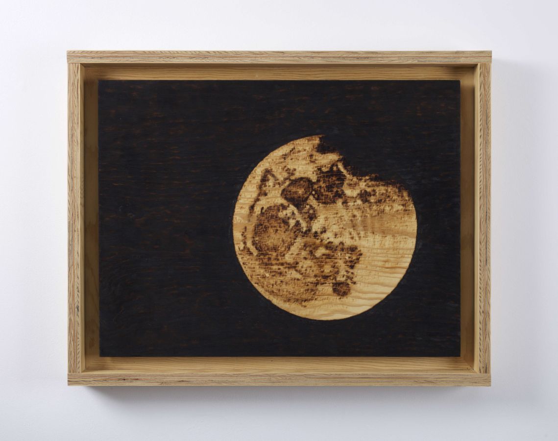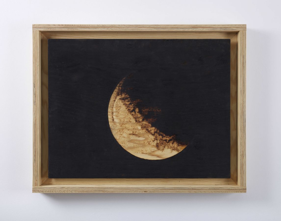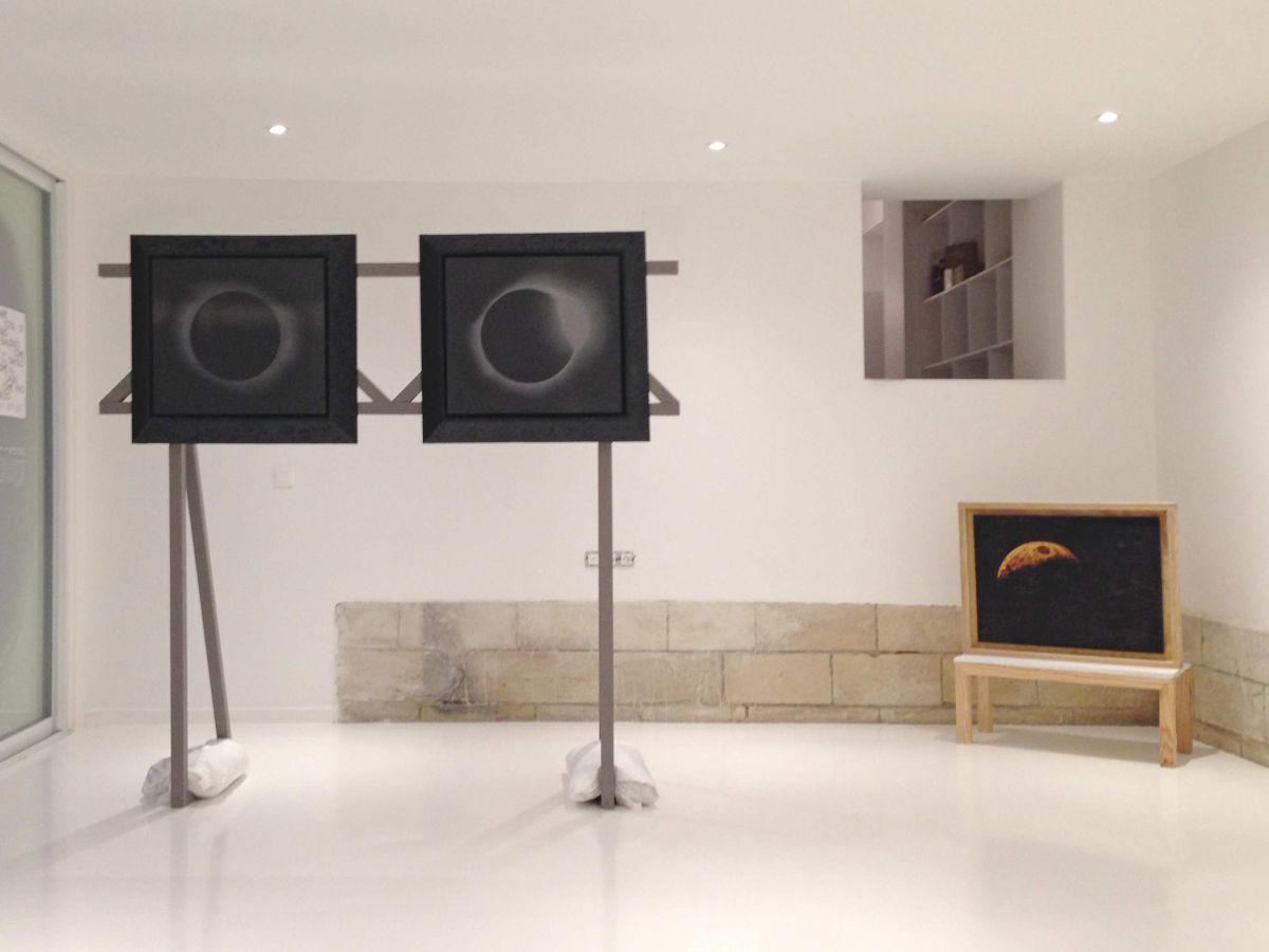 À l’issue de sa résidence à Lindre-Basse, Tony Regazzoni présente sa dernière série d’éclipses, motif qu’il a déjà investi dans plusieurs œuvres récentes. Dans ce principe de nuit artificielle, ce qui l’intéresse c’est précisément le faux-semblant, le paradoxe, mais aussi l’étrangeté du phénomène qui se prête à tous les fantasmes, tout aussi bien ceux des millénaristes en mal de fin du monde, que ceux des scientifiques les plus avertis. L’éclipse c’est aussi un passage, de l’ombre à la lumière, du jour à la nuit, et retour, mais un retour dont on reviendrait légèrement changé, car tous les rites de passage induisent un processus de transformation, des corps ou des esprits. […] Comme dans le black out qui voit soudain les lumières de la ville stopper net, l’éclipse est une pause, un moment d’arrêt susceptible de faire dérailler les machines et d’introduire du désordre dans le calme des apparences. Dans la première série qu’il a réalisée en 2011, Tony Regazzoni utilise une technique qui l’amène à brûler le bois constitutif de ses tableaux. Ce sont les surfaces brûlées qui dessinent le motif laissant en réserve la représentation des parties lumineuses. Dessiner en brûlant, c’est finalement donner corps à une énergie brute, celle de la chaleur qui calcine le bois, celle du soleil qui brûle les rétines, ou peut-être encore celle des corps qui dansent jusqu’à en perdre haleine. Pendant sa résidence, il initie une nouvelle série en expérimentant d’autres matériaux, qui à la nuit tombée, prennent tout leur sens…