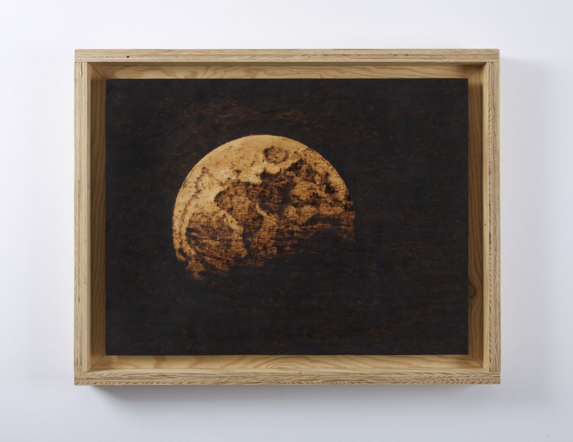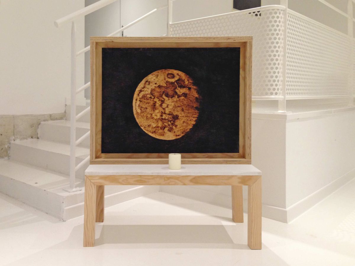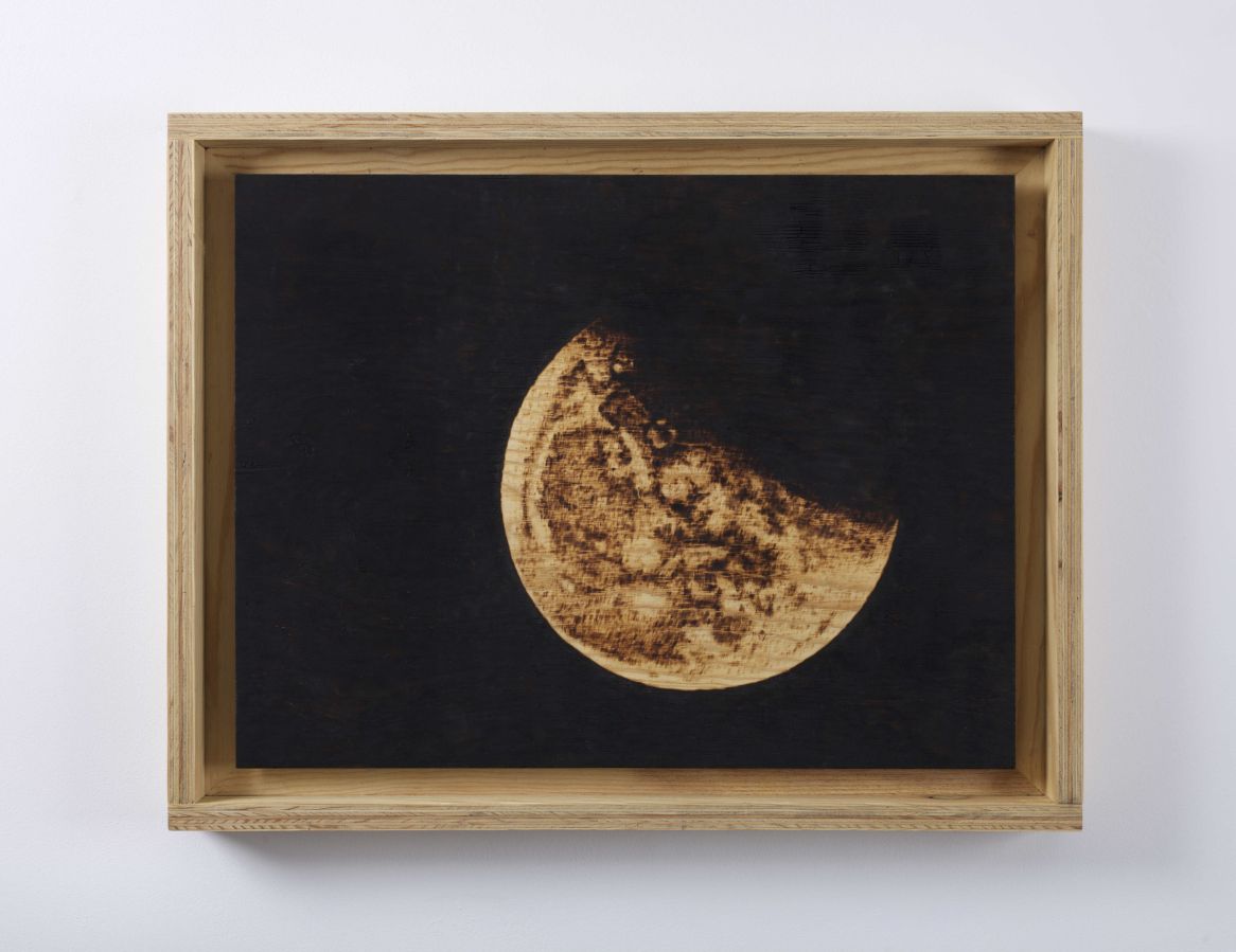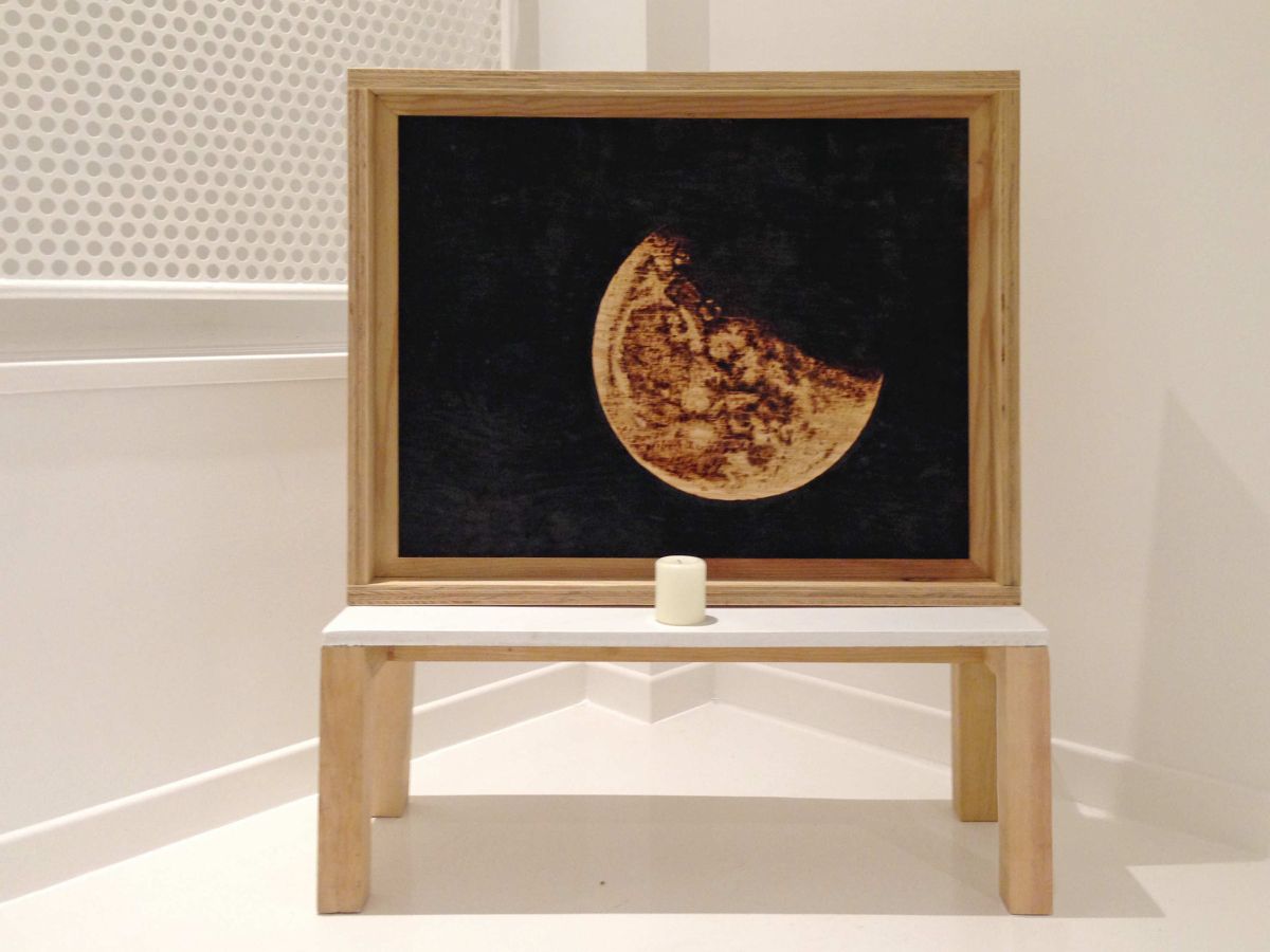 À l’issue de sa résidence à Lindre-Basse, Tony Regazzoni présente sa dernière série d’éclipses, motif qu’il a déjà investi dans plusieurs œuvres récentes. Dans ce principe de nuit artificielle, ce qui l’intéresse c’est précisément le faux-semblant, le paradoxe, mais aussi l’étrangeté du phénomène qui se prête à tous les fantasmes, tout aussi bien ceux des millénaristes en mal de fin du monde, que ceux des scientifiques les plus avertis. L’éclipse c’est aussi un passage, de l’ombre à la lumière, du jour à la nuit, et retour, mais un retour dont on reviendrait légèrement changé, car tous les rites de passage induisent un processus de transformation, des corps ou des esprits. […] Comme dans le black out qui voit soudain les lumières de la ville stopper net, l’éclipse est une pause, un moment d’arrêt susceptible de faire dérailler les machines et d’introduire du désordre dans le calme des apparences. Dans la première série qu’il a réalisée en 2011, Tony Regazzoni utilise une technique qui l’amène à brûler le bois constitutif de ses tableaux. Ce sont les surfaces brûlées qui dessinent le motif laissant en réserve la représentation des parties lumineuses. Dessiner en brûlant, c’est finalement donner corps à une énergie brute, celle de la chaleur qui calcine le bois, celle du soleil qui brûle les rétines, ou peut-être encore celle des corps qui dansent jusqu’à en perdre haleine. Pendant sa résidence, il initie une nouvelle série en expérimentant d’autres matériaux, qui à la nuit tombée, prennent tout leur sens…