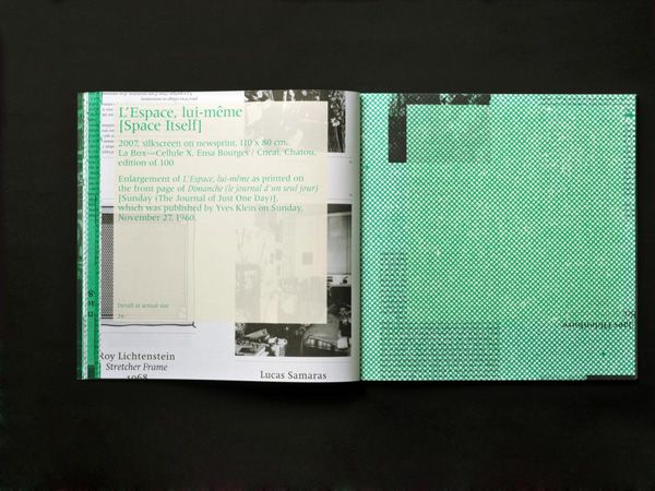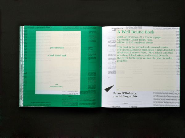 Ce catalogue fonctionne comme un palimpseste : construit sur la première publication en français de l’ouvrage canonique de Brian O’Doherty Inside the White Cube (L’espace de la galerie et son idéologie, JRP|Ringier, collection Lectures Maison Rouge), il laisse entr’apercevoir le texte et sa mise en page, tout en lui superposant des reproductions et des commentaires du travail de Yann Sérandour.