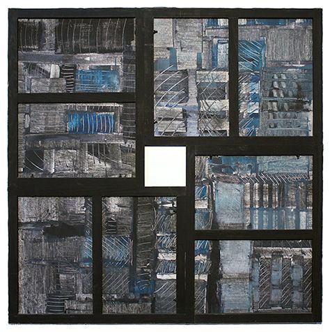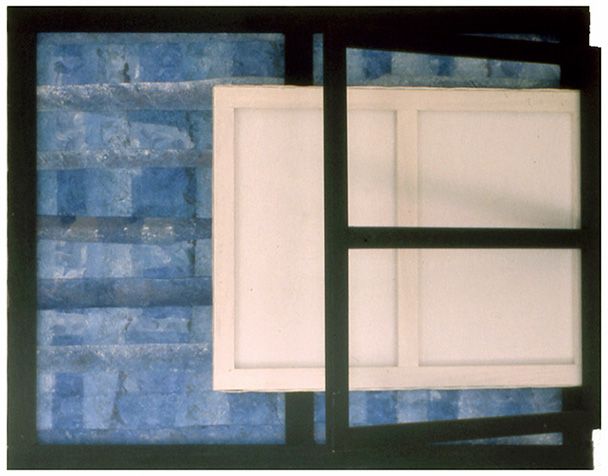 Quoique secondaire, une signification sollicite l’esprit : des barreaux. D’où l’idée de prison. Une obsession d’enfermement. Prison physique ou prison morale, ou mentale, ou encore par une transformation de ce thème de base, la fenêtre : cadres blancs articulés sur les côtés de certains assemblages. Fenêtres ouvertes ou fermées sur nulle image : sur une impression colorée dans laquelle se cristallise peut-être un sentiment.