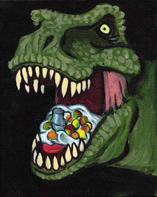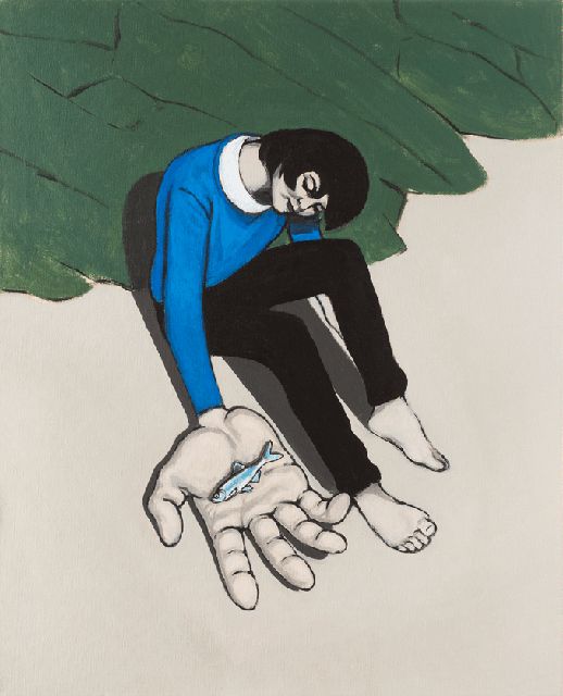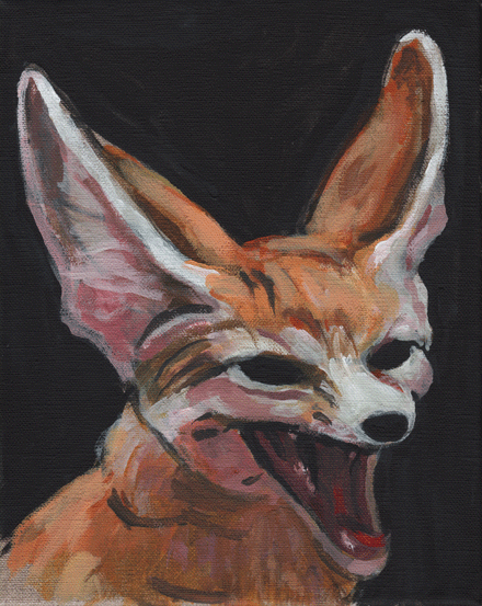 Pour Compagnie, j’ai conçu un ensemble d’oeuvres qui ont le point commun de représenter un animal. J’ai composé cet ensemble en imaginant plusieurs lectures possibles. L’une de ces lectures peut consister à identifier les différents styles de représentations qui sont utilisées, une autre lecture permet d’aborder cette série en découvrant les références culturelles qui s’y trouvent, une autre encore peut consister à identifier le rapport entre la peinture et sa reproduction, étudier sa matérialité, son support. Cette série permet aussi d’identifier les différents types d’animaux qui sont représentés et d’engager une réflexion sur le sort réservé aux animaux. L’accrochage en damier permet enfin d’interpréter librement cet ensemble en choisissant le sens de sa lecture.