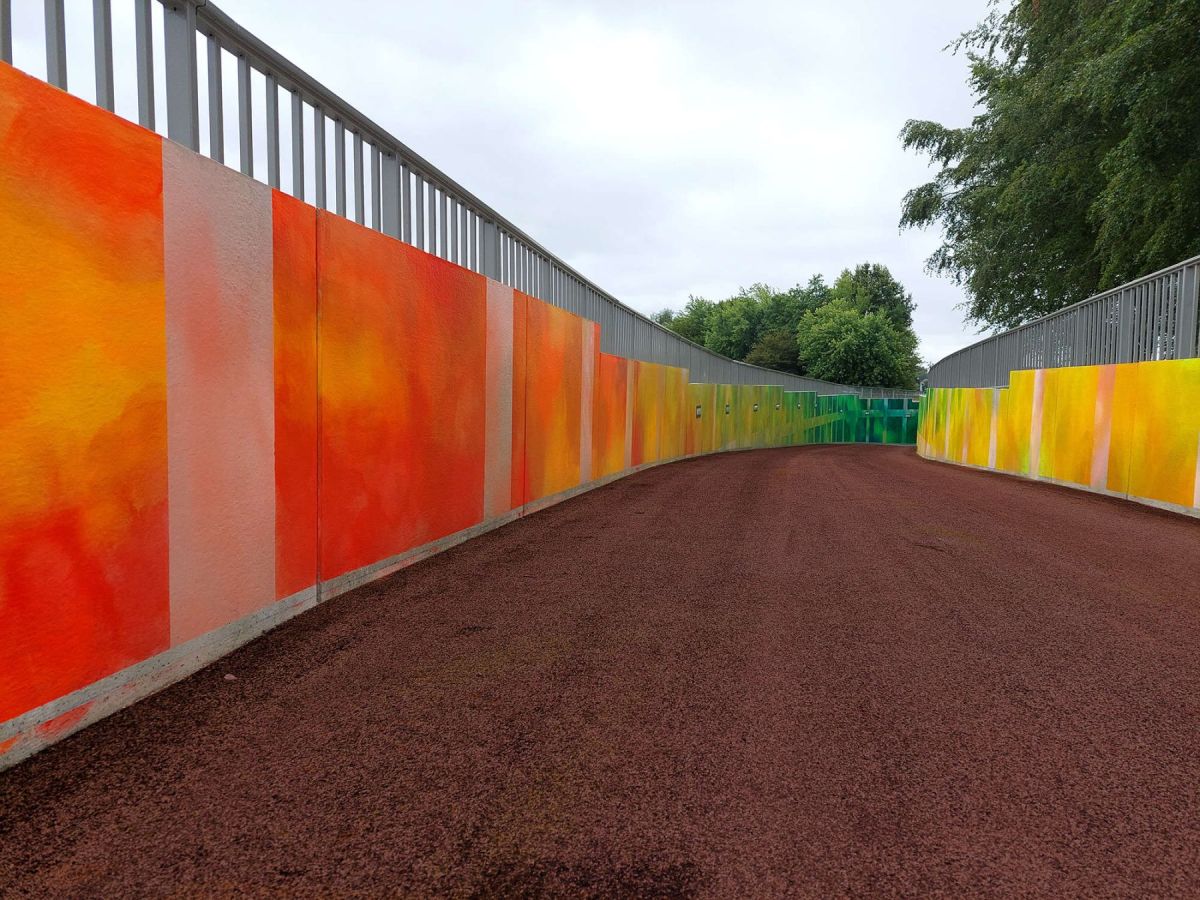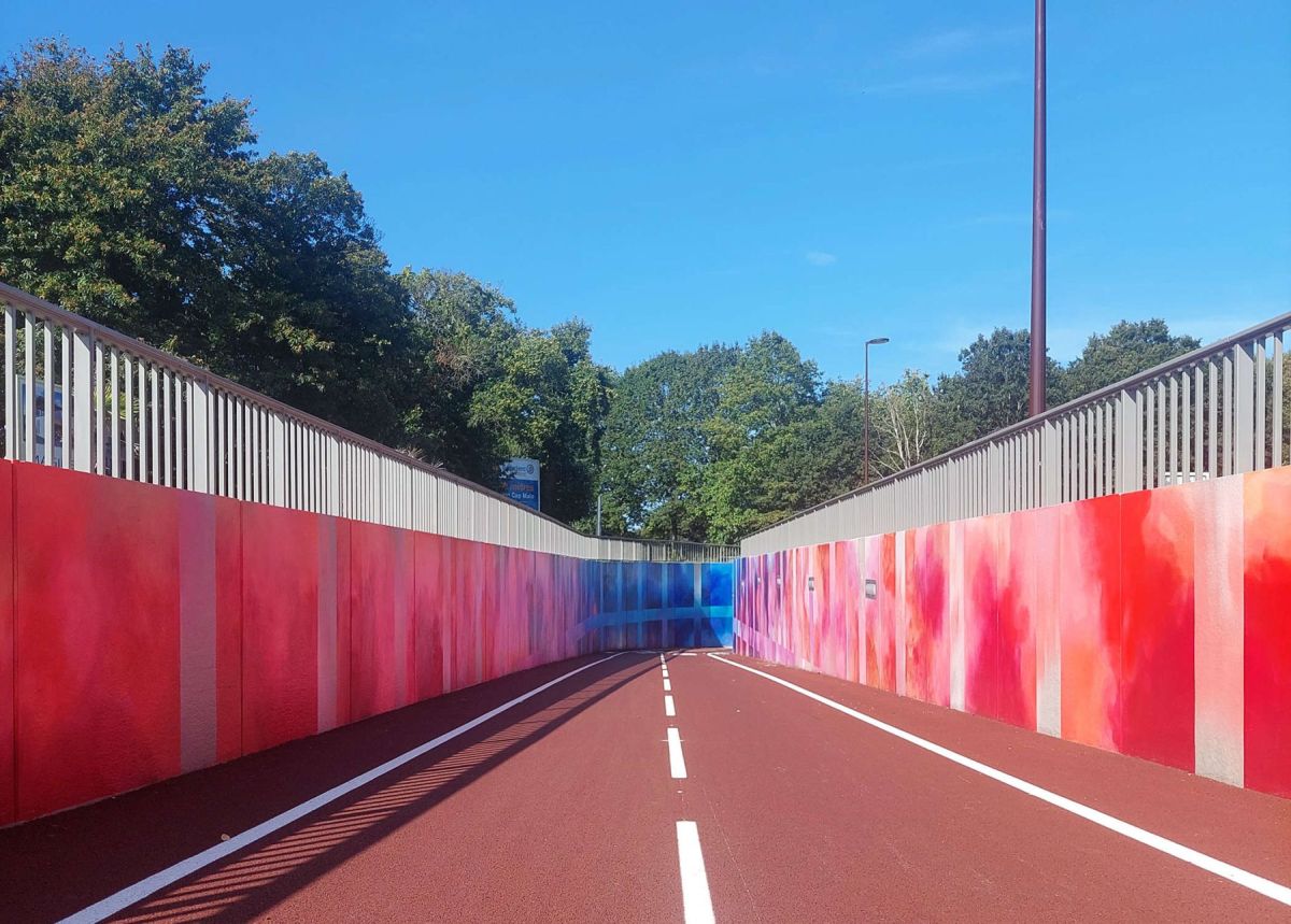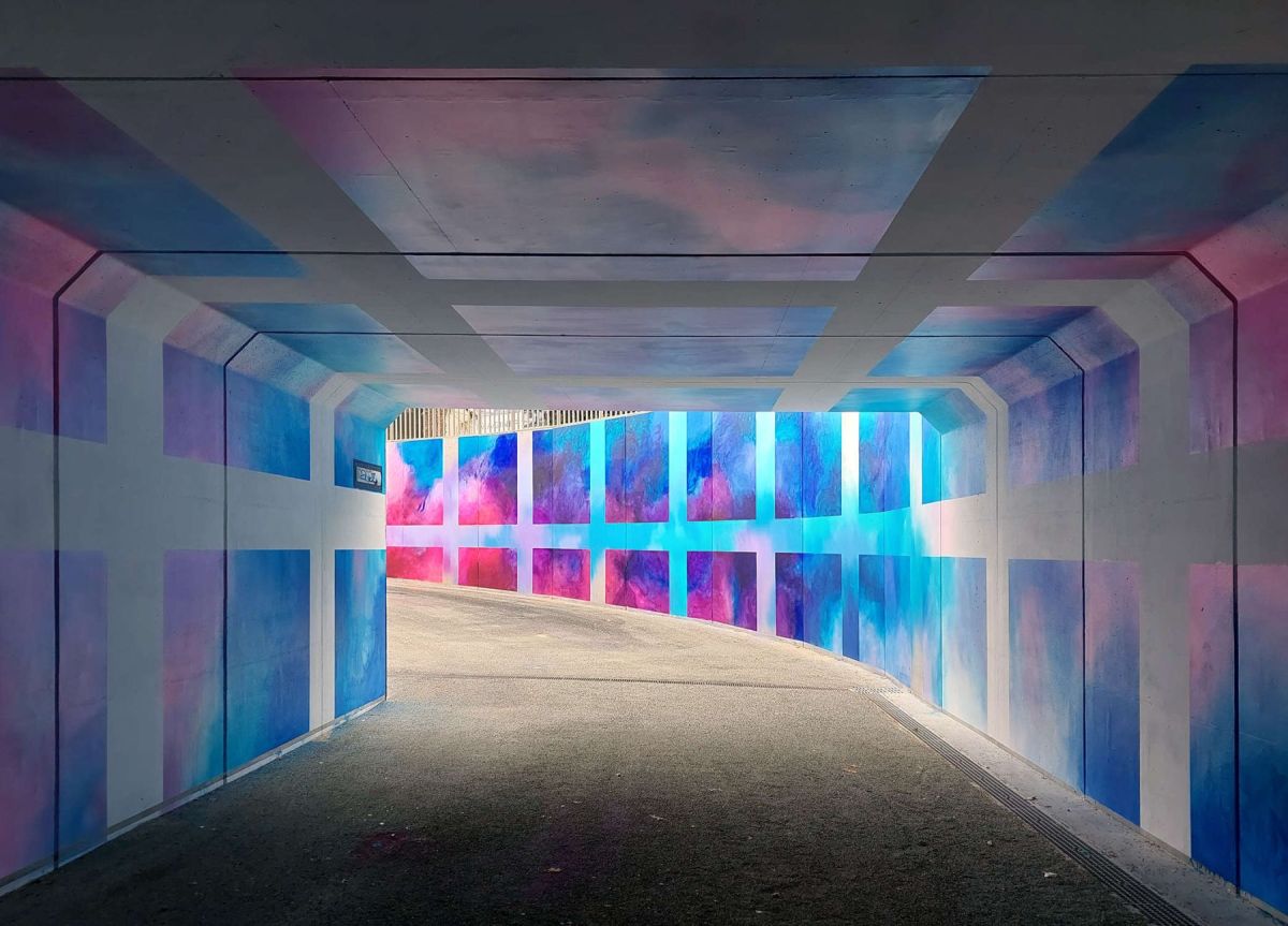 Fresque réalisée par l’artiste Elsa Tomkowiak dans le tunnel de la piste cyclable sur la commune de La Mézière